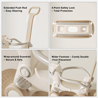 Push Rod 80 lbs Weight Capacity with Sound Brown Guardrails & 4 Smooth Wheels HDPE Material 4-in-1 Baby Rocking Horse for Toddlers 1-3 Years – Ride-On Toy with Detachable Balance Board