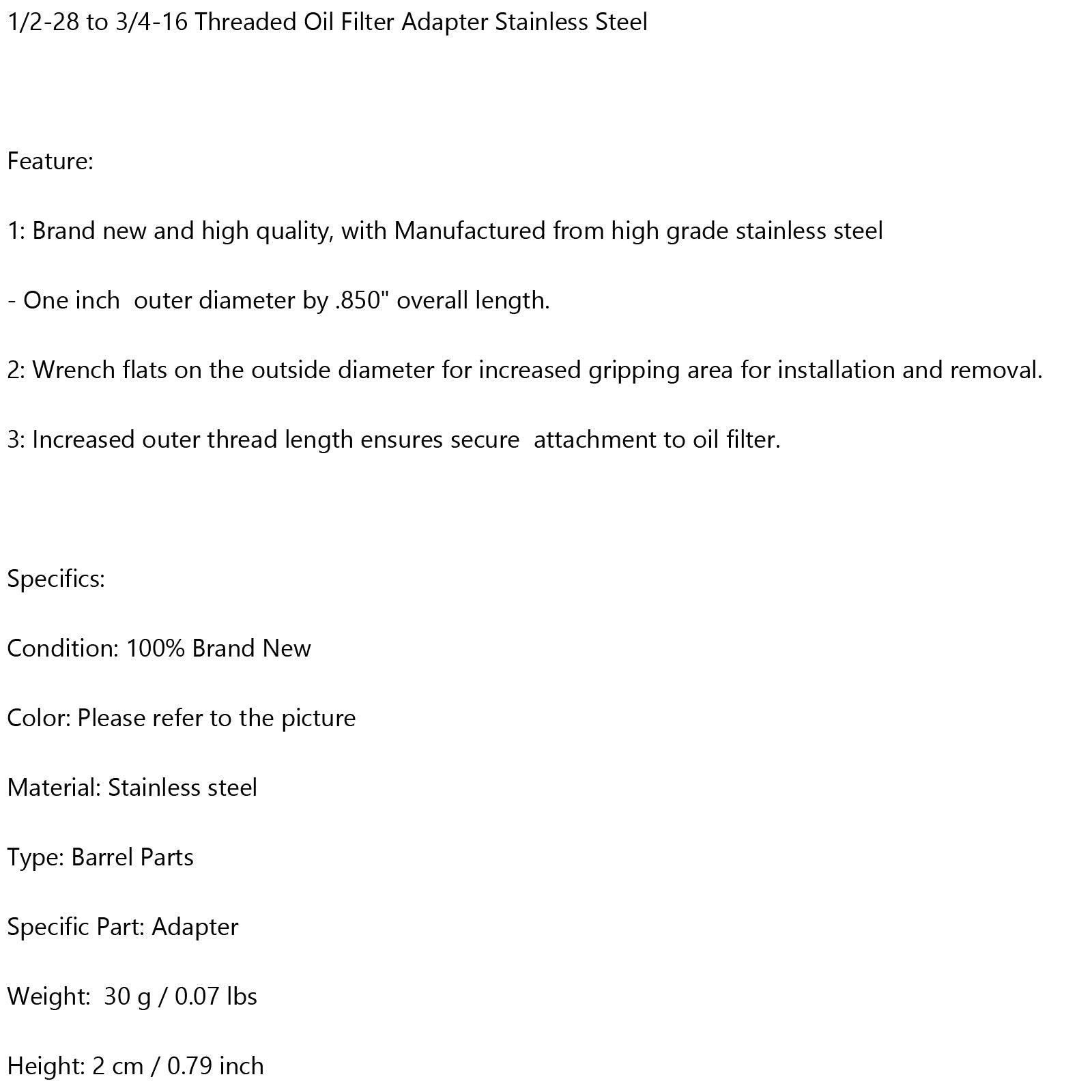 1/2-28 to 3/4-16 Threaded Oil Filter Adapter Stainless Steel