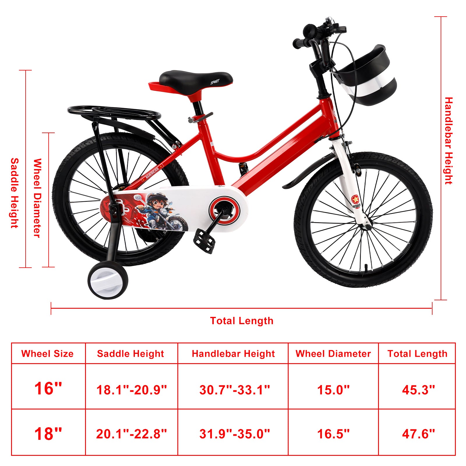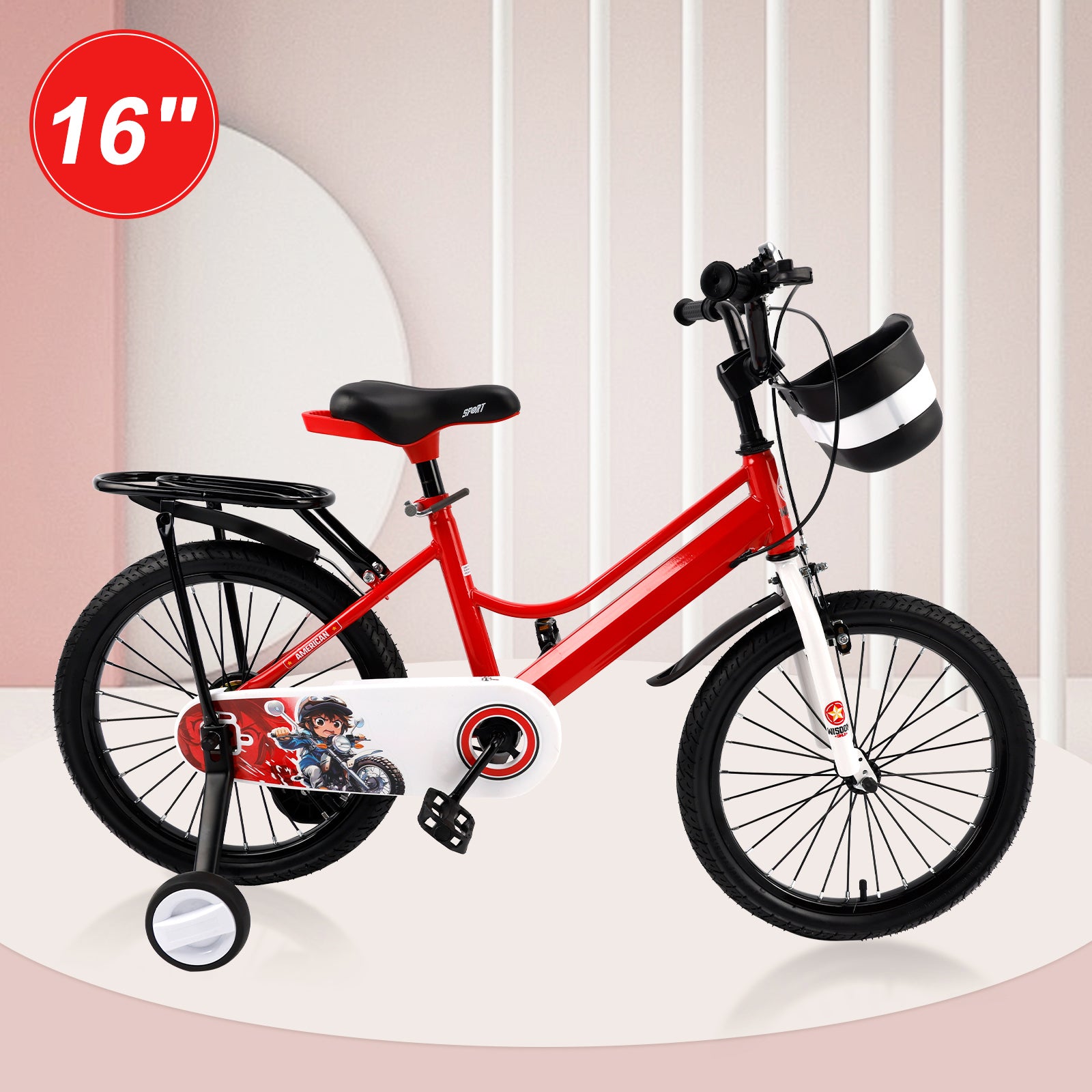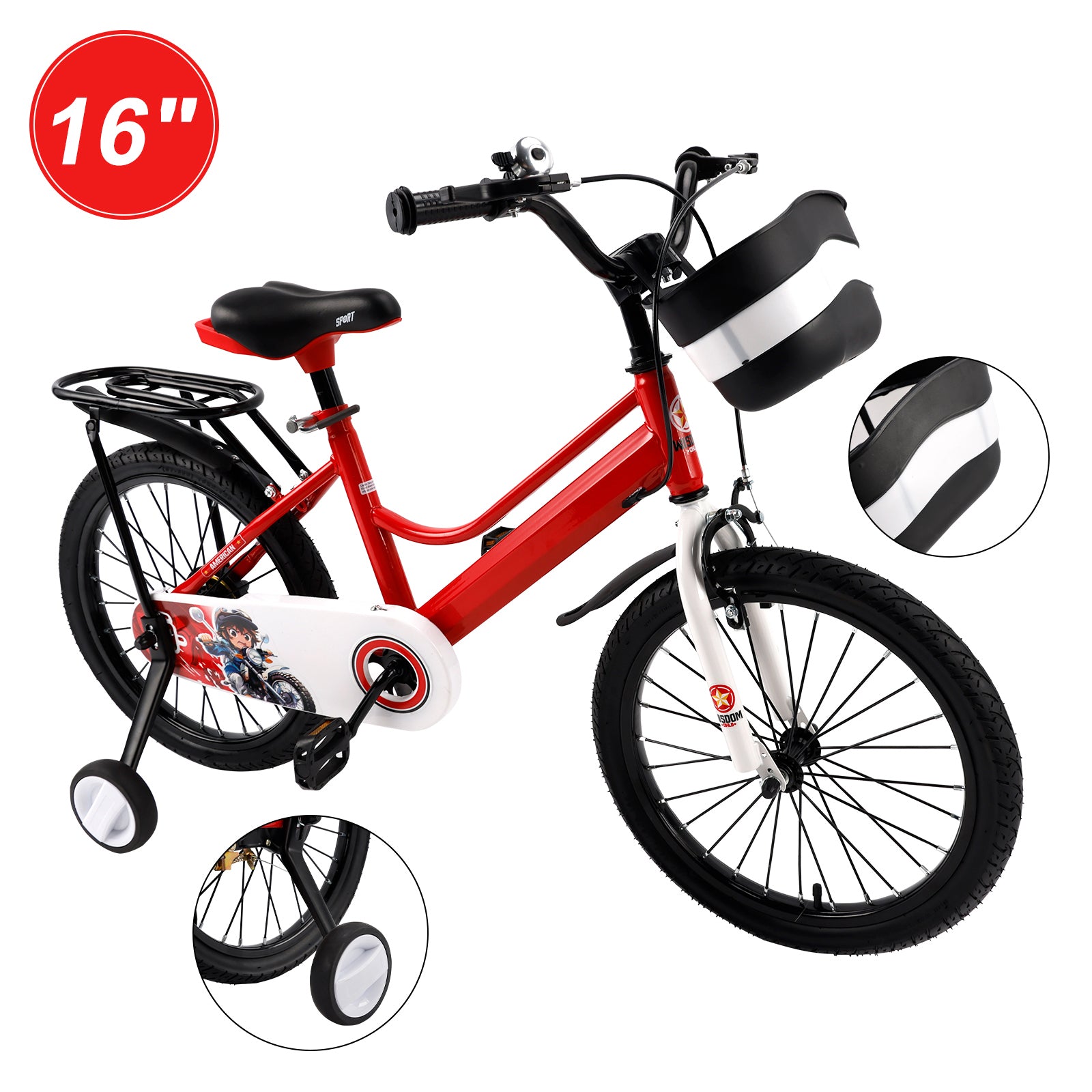 16" Kids Bike for Boys and Girls with auxiliary wheels & Rack Red