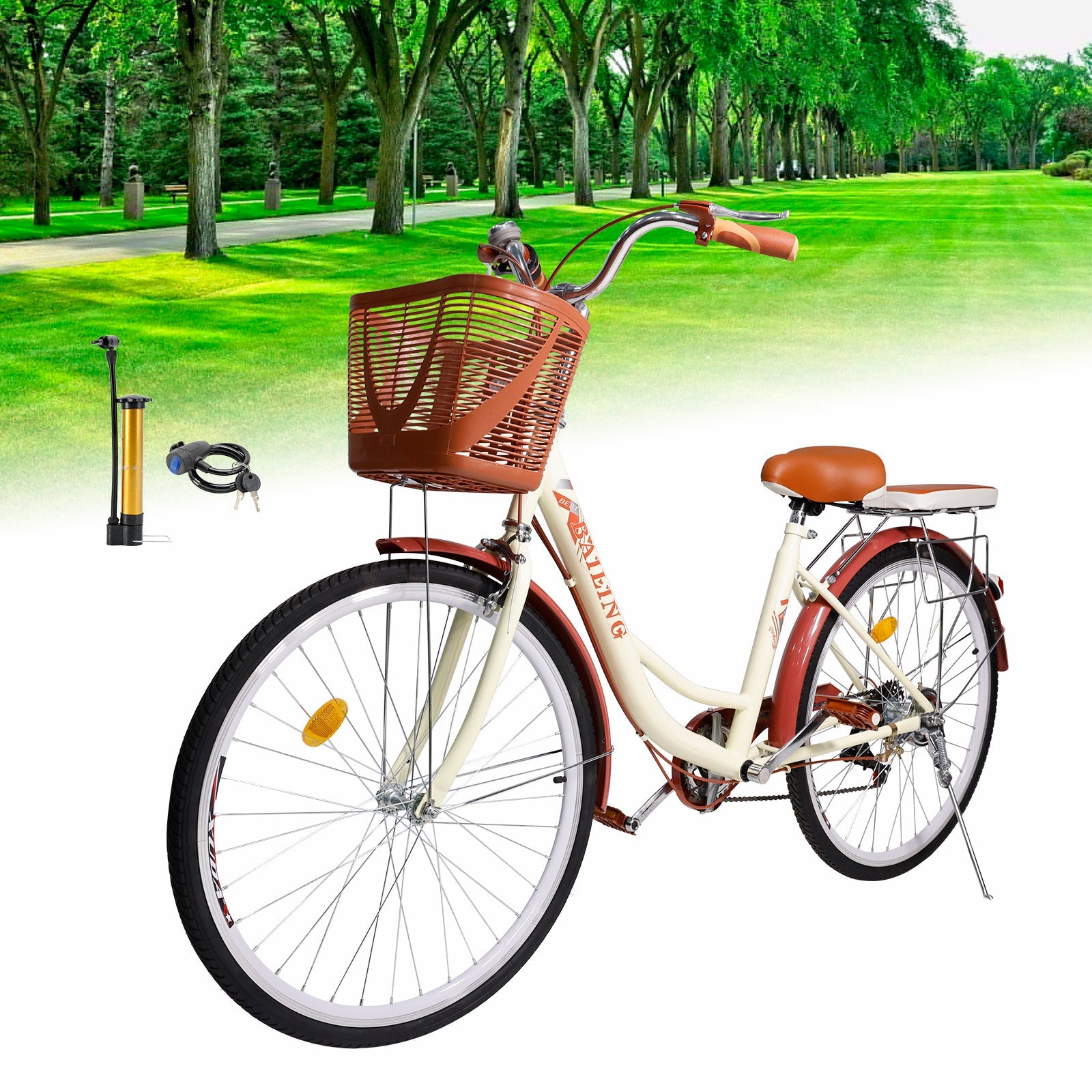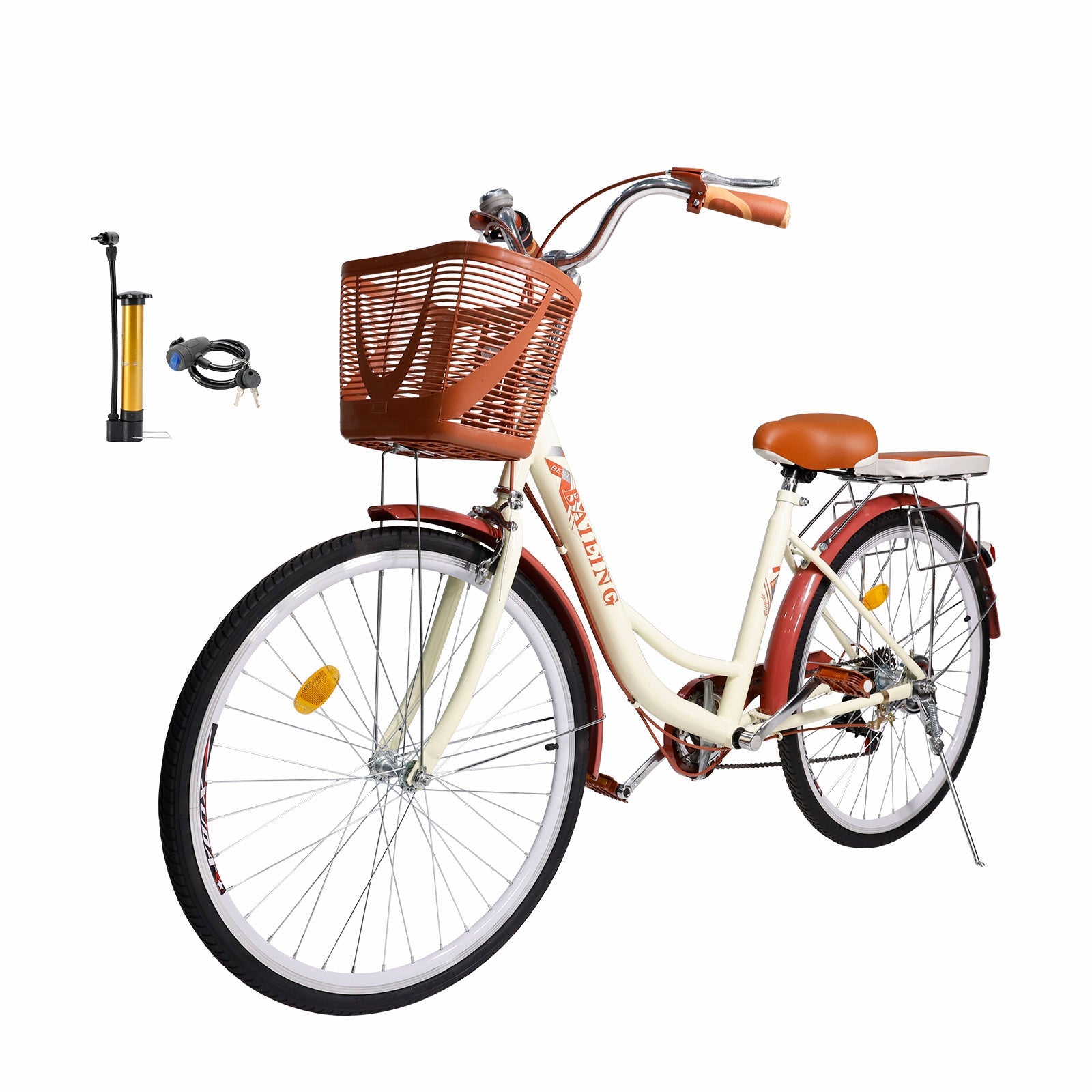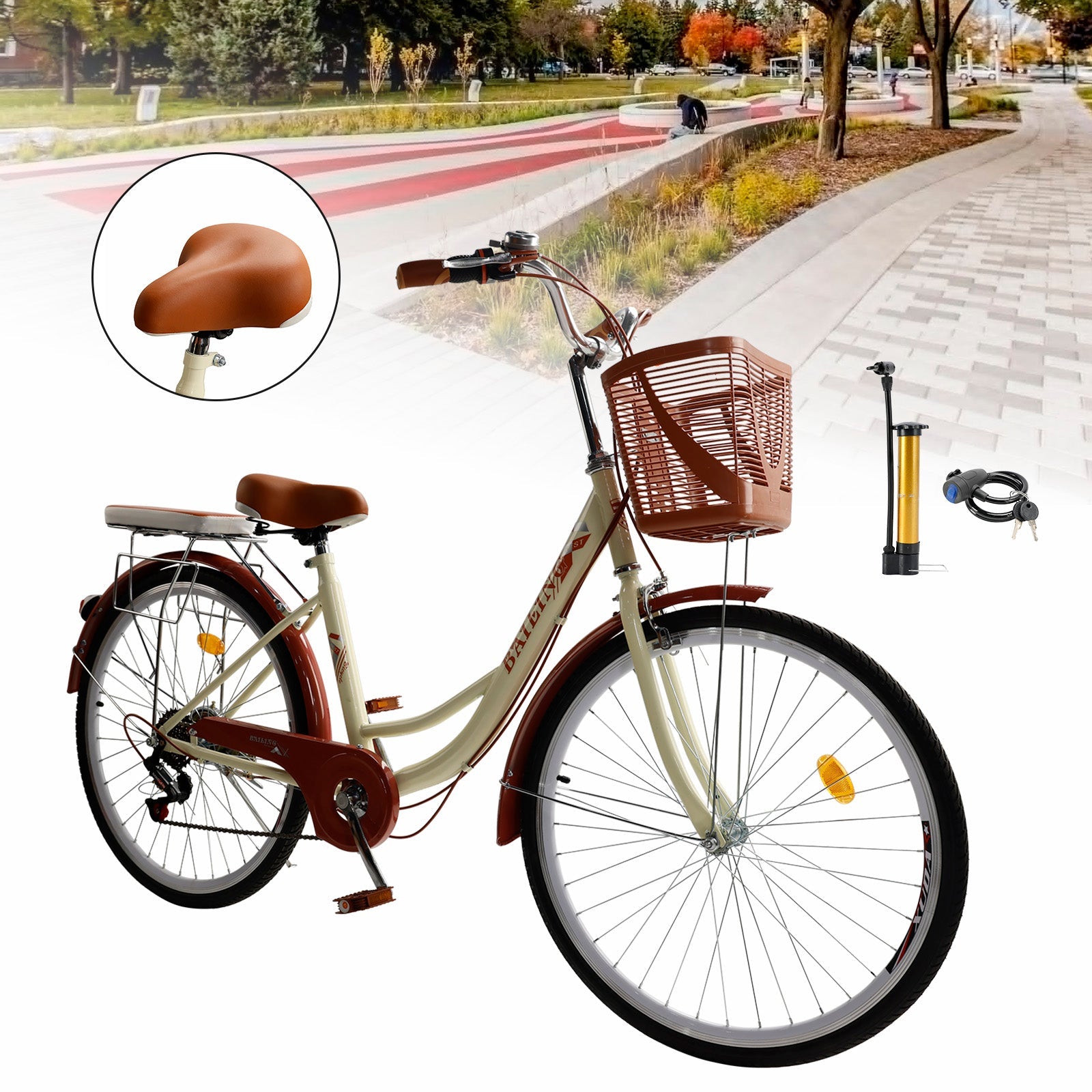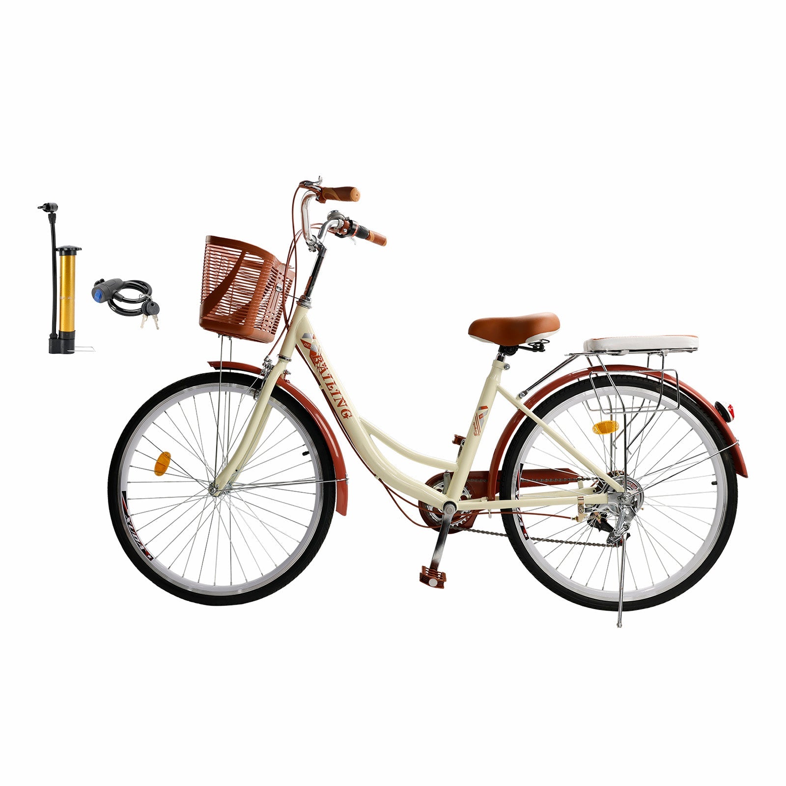 26-Inch 7-Speed Women's Cruiser Bike – Classic City Bicycle with Spoke Wheels (Cream)