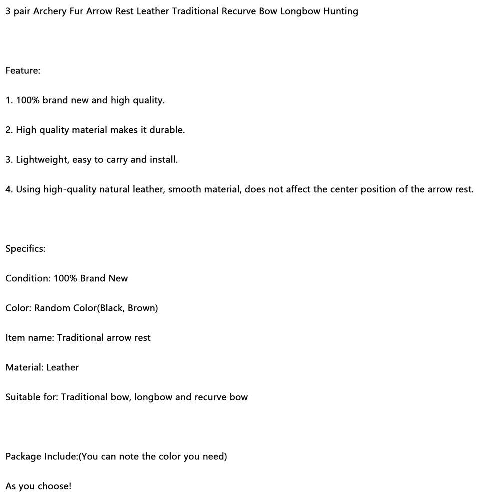 3 Pair Archery Fur Arrow Rest Leather Recurve Longbow Hunting