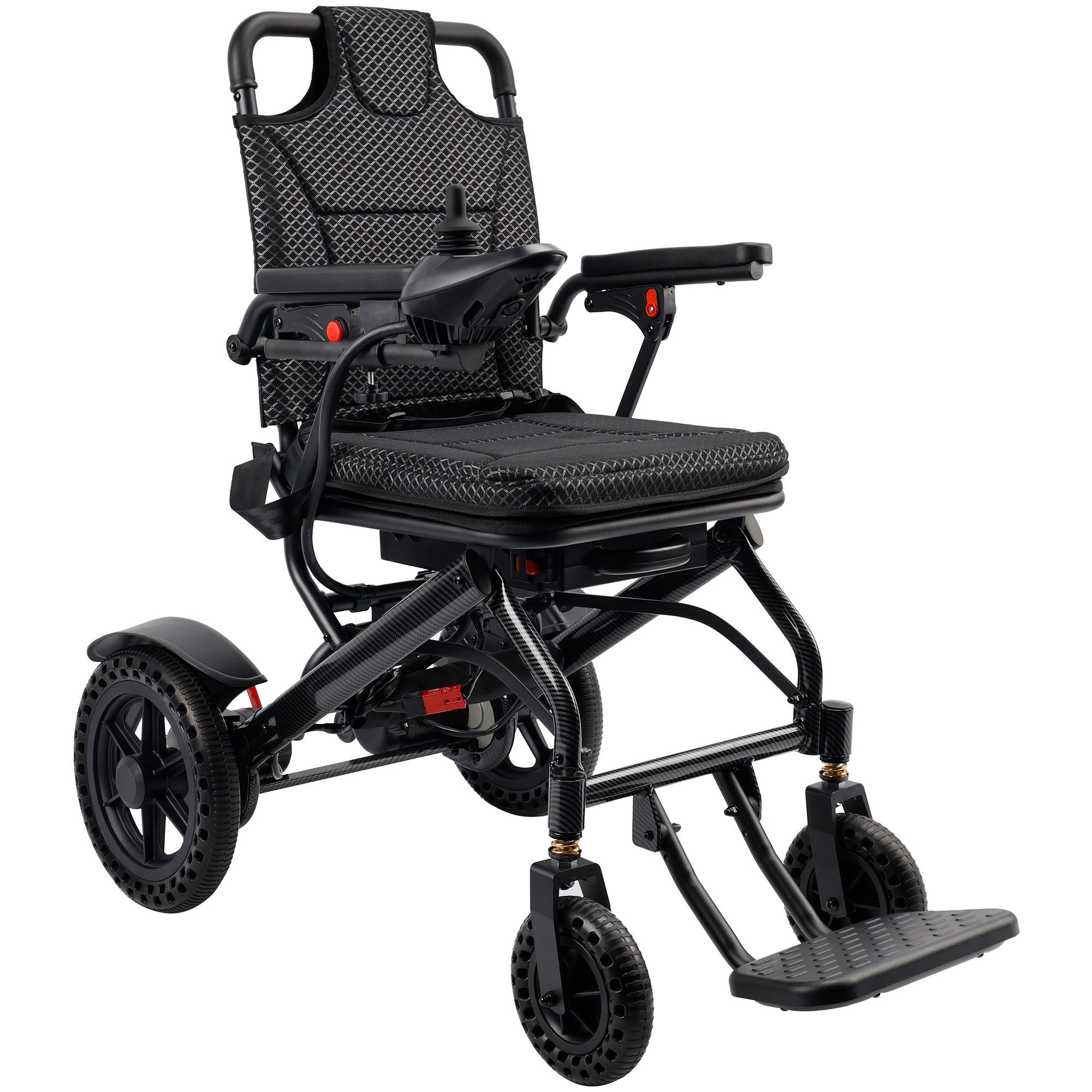 Powerful Performance:Powered by a 6Ah lithium battery, the wheelchair has a standard range of up to 10 km. It features 360W motors for smooth and efficient movement across various terrains, with front 6-inch and rear 12-inch solid wheels.