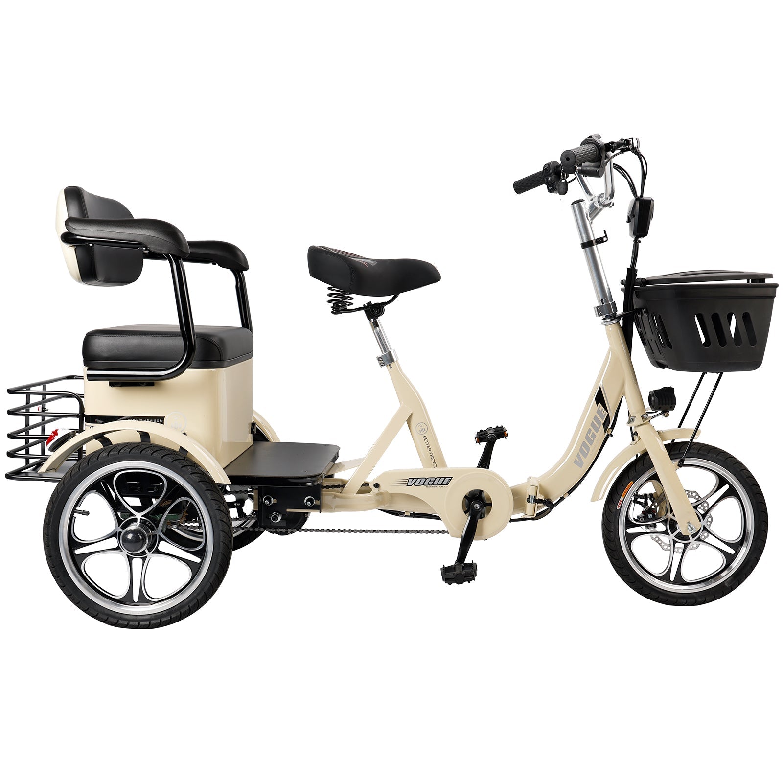400W 48V 12A Electric Folding Tricycle Adult White Rear Seat
