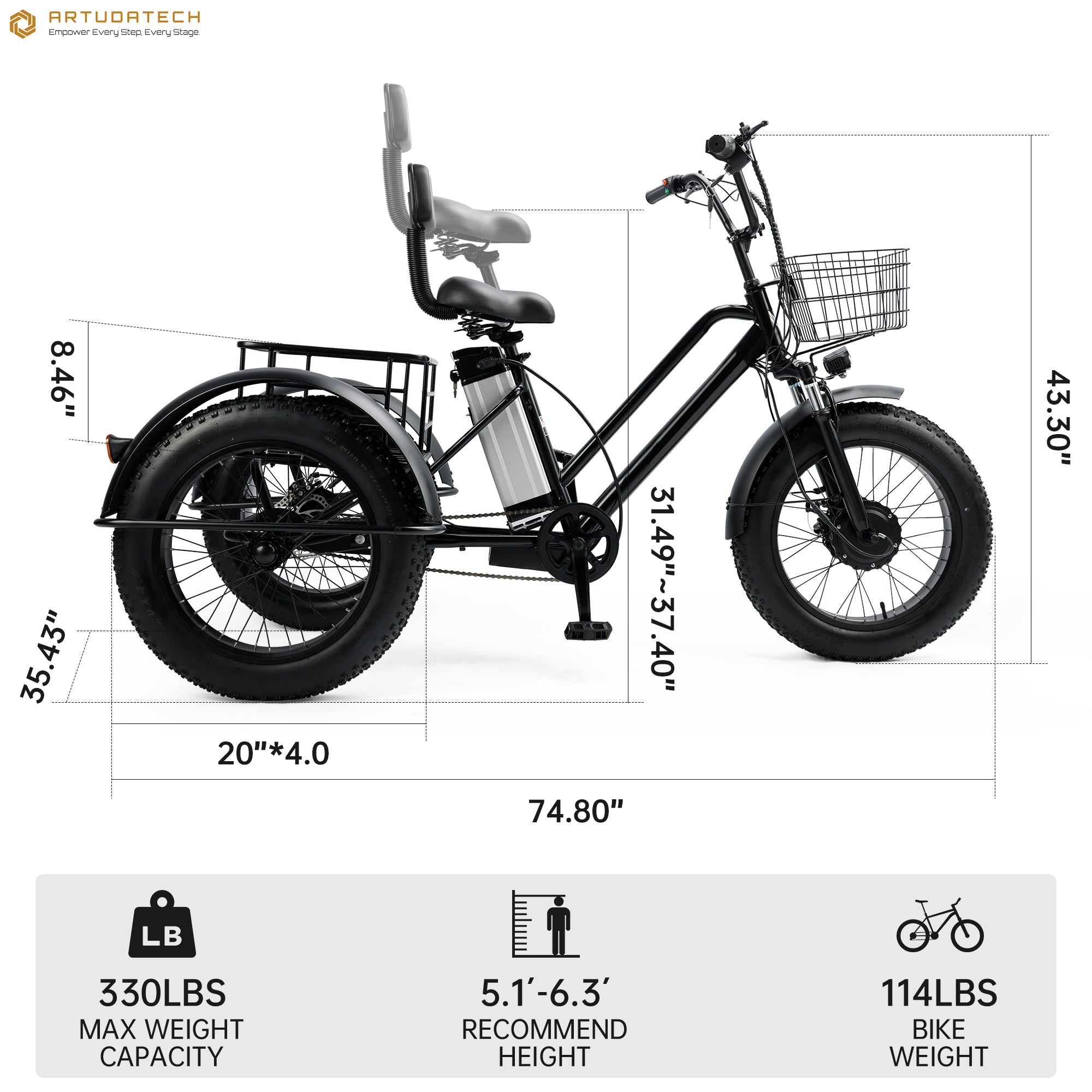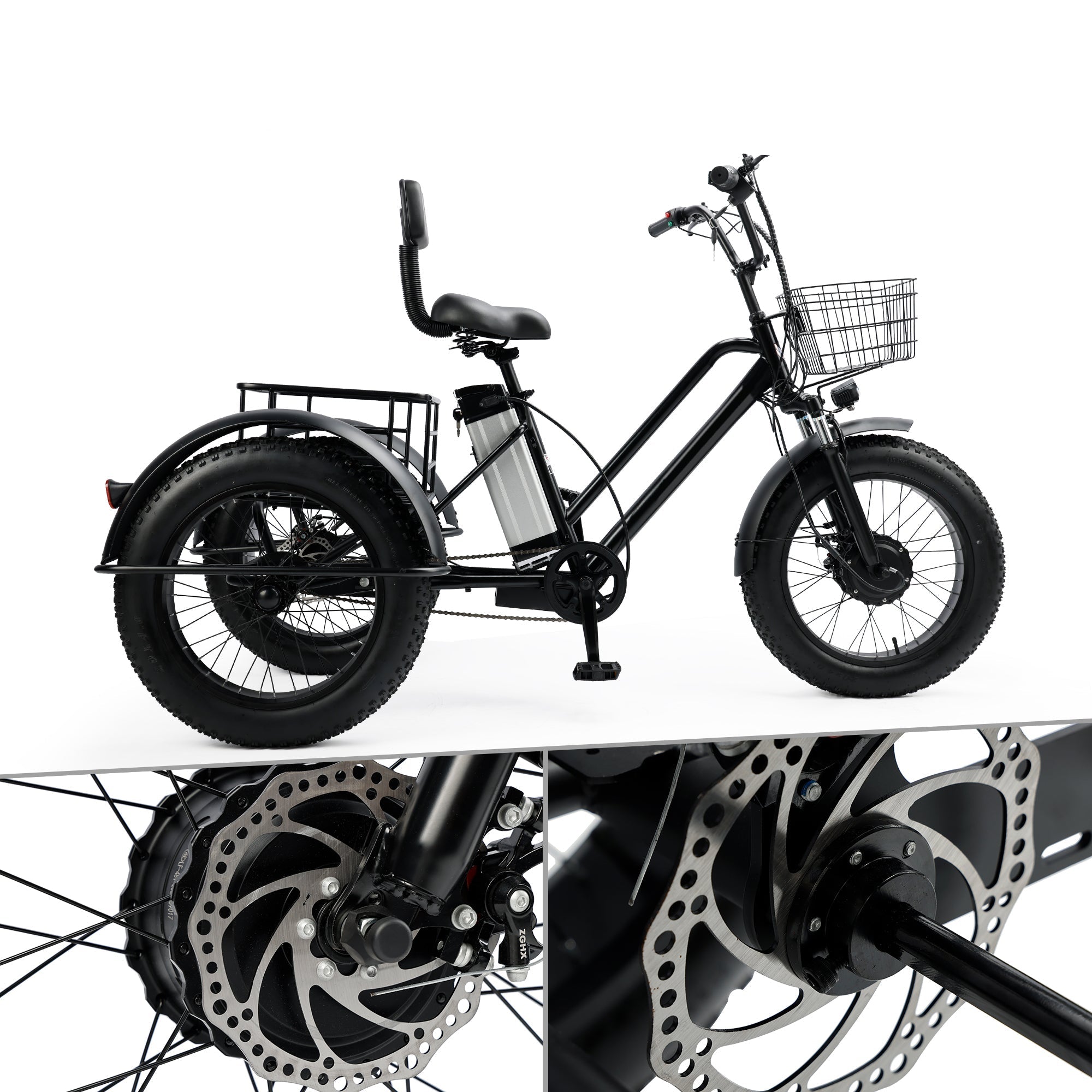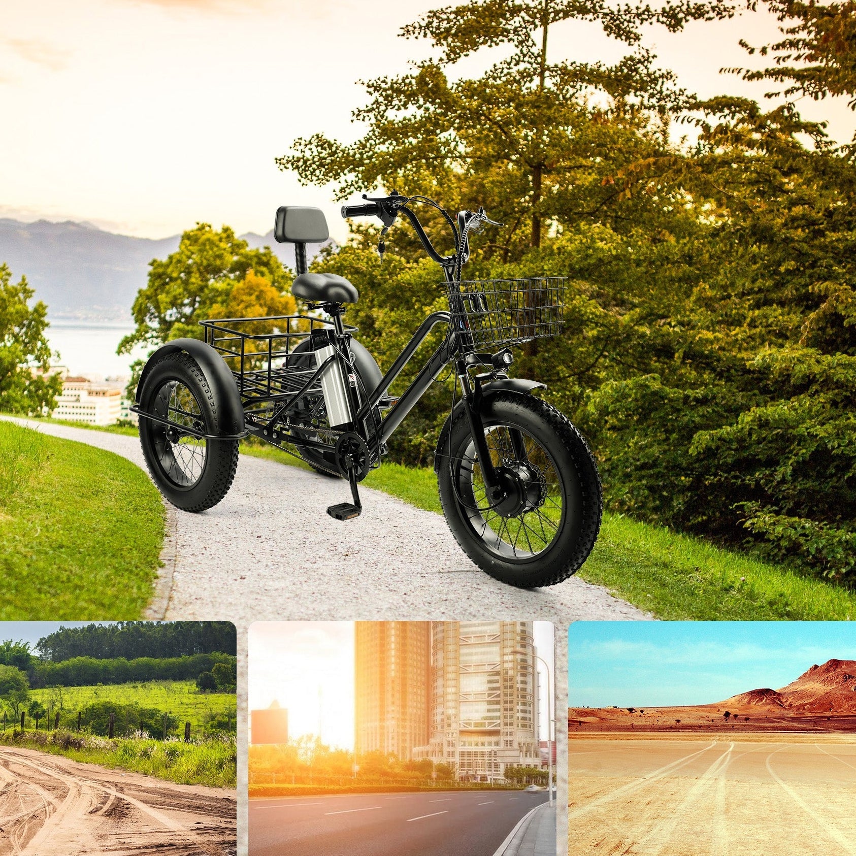 500W 48V 13A Electric Tricycle 3 Wheel Fat Tire E-Bike Snow