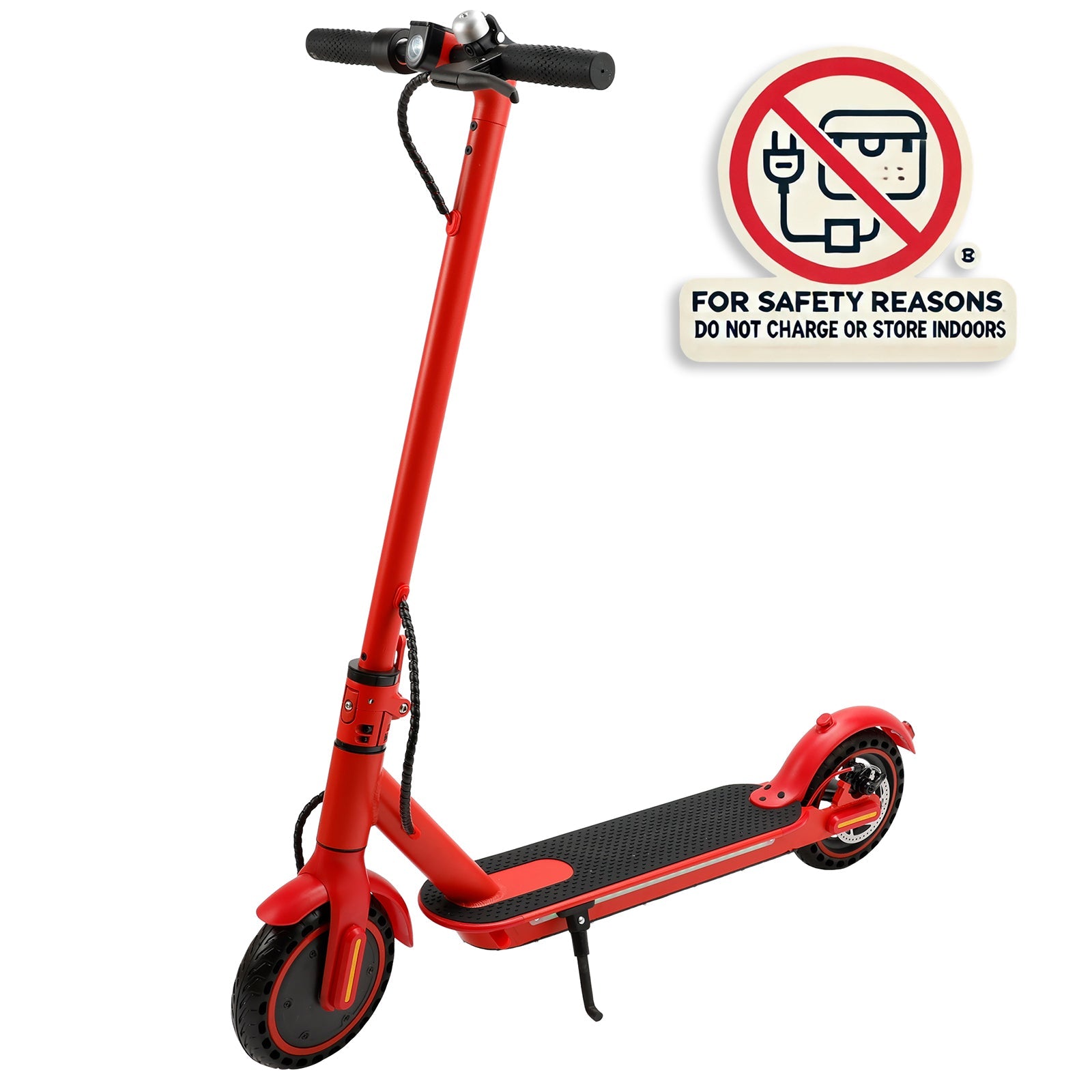 8.5" Folding Electric Scooter 350W 35KM Maximum battery life Range 30KM/H Charging and Storage Environment: For safety reasons, indoor charging and storage are prohibited. If indoor charging is necessary, please stay in the charging area at all times and ensure there are no flammable materials within a 3 to 6 feet radius.
