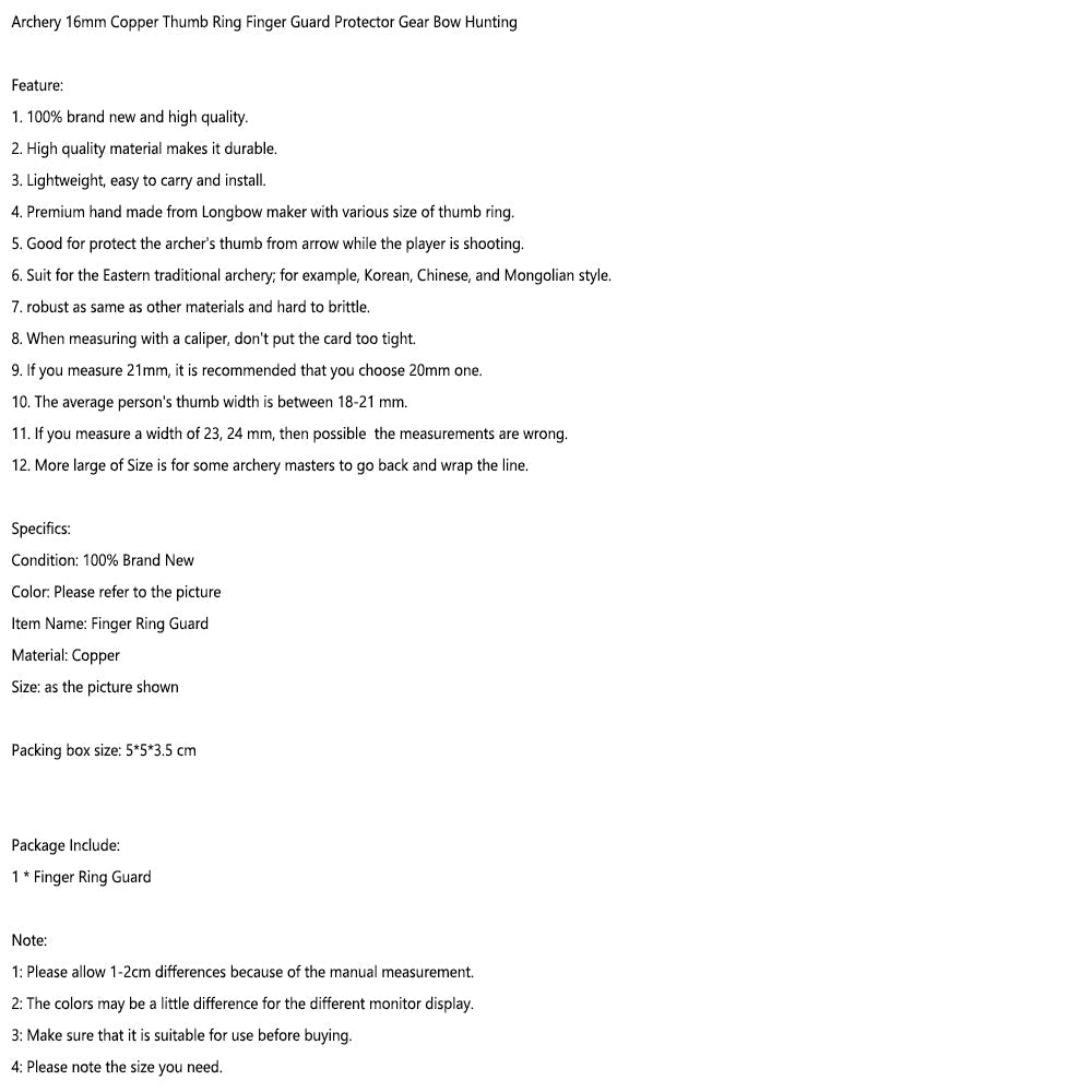 Archery 16mm Copper Thumb Ring Finger Guard Bow Hunting Gear