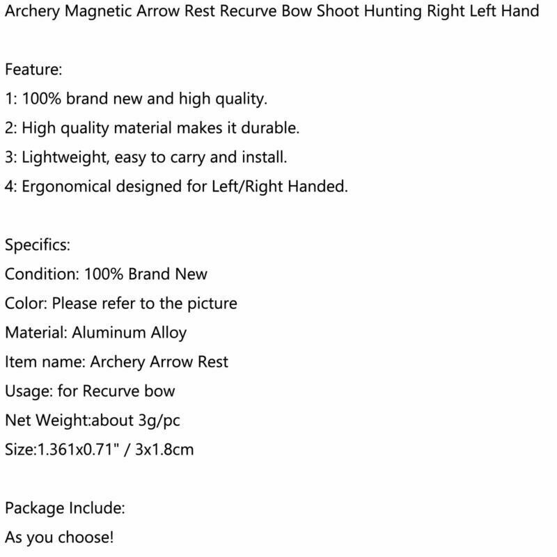Archery Magnetic Arrow Rest Recurve Bow Shoot Hunting Right Left Hand