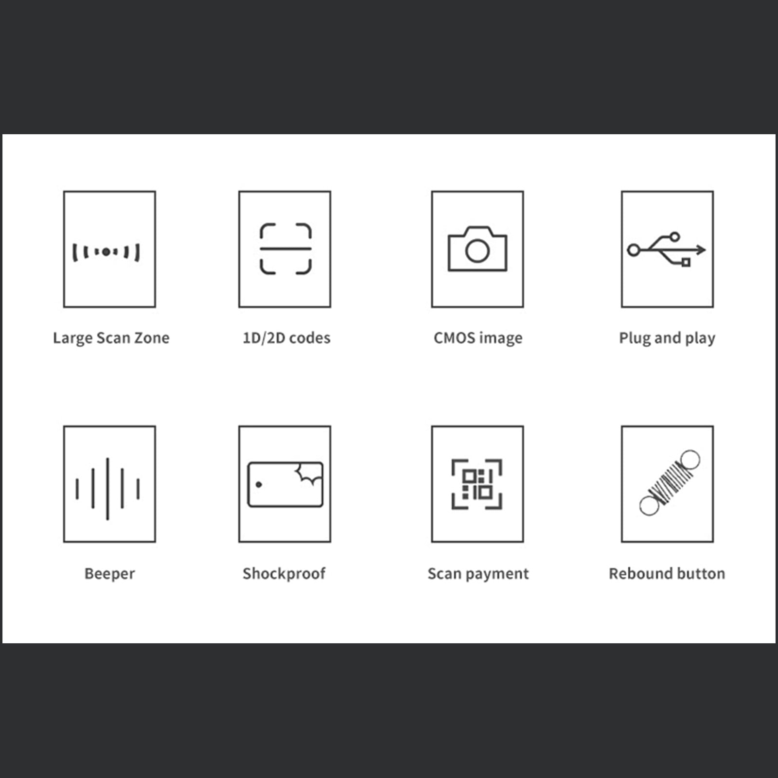 Automatic 2-in-1 USB Barcode Scanner – 1D & 2D Code Reader with Stand for Retail, POS, Inventory