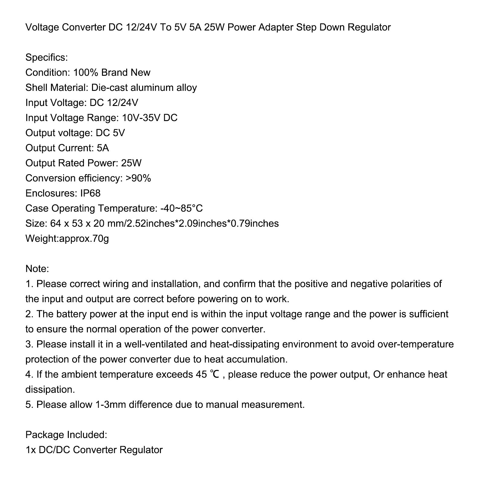 Voltage Converter DC 12/24V To 5V 5A 25W Power Adapter Step Down Regulator