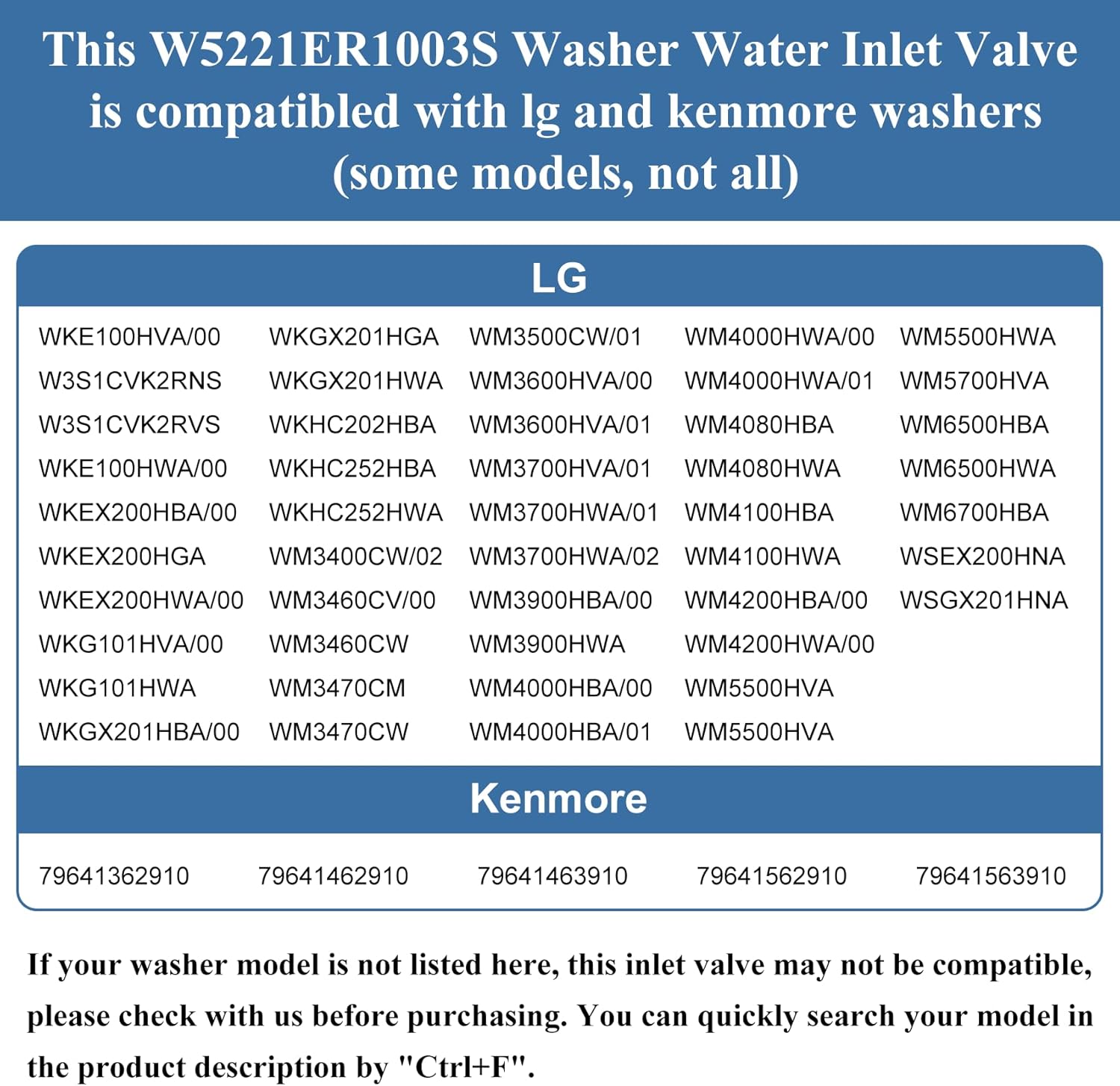 Works perfectly with various LG washing machine models like WM3900HBA, WM4200HWA, and moreâcheck the full compatibility list! -