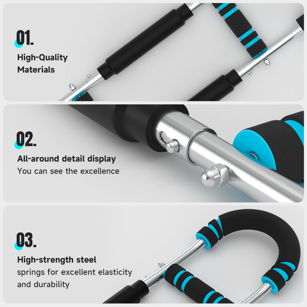 Crafted from a durable iron core tube, premium steel spring, and NBR foam, this blue arm trainer offers adjustable resistance up to 40kg, perfect for beginners and advanced users.
