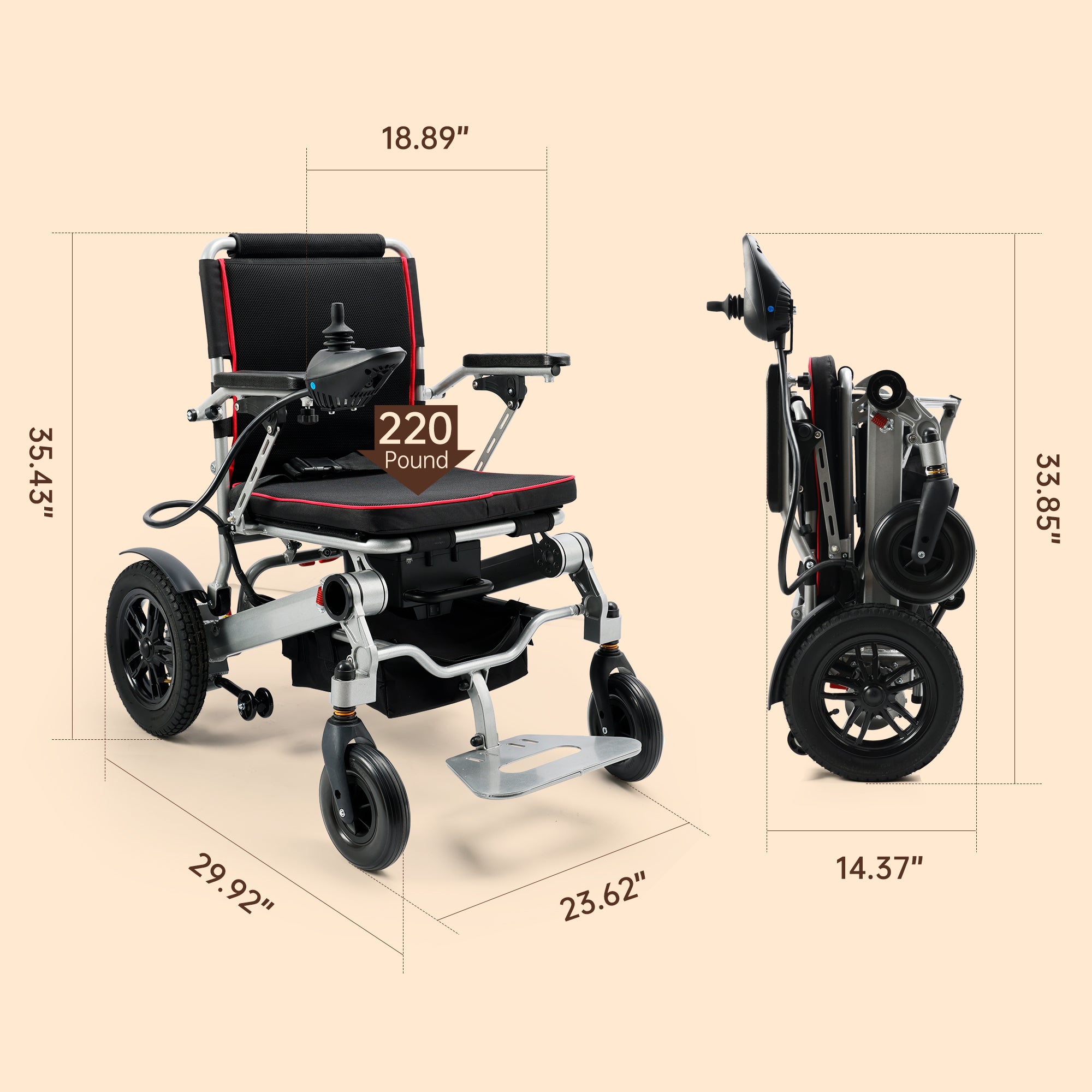 Topteng 3-Second Fold Power Wheelchair | Lightweight, 220 lb Capacity