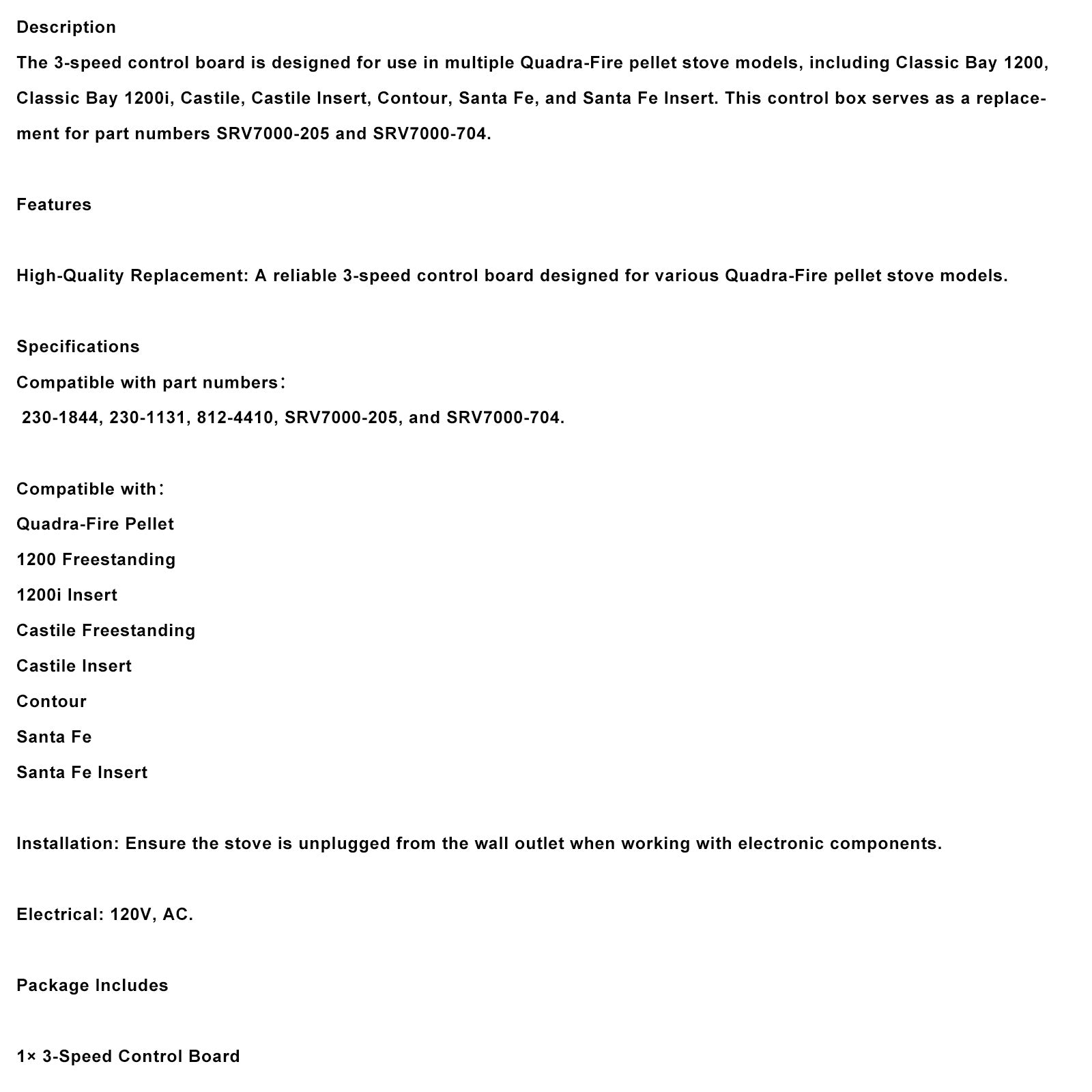 🔧 Perfect Replacement Part – Directly replaces Quadra-Fire pellet stove control boards, including part numbers SRV7000-205 & SRV7000-704 for seamless integration.