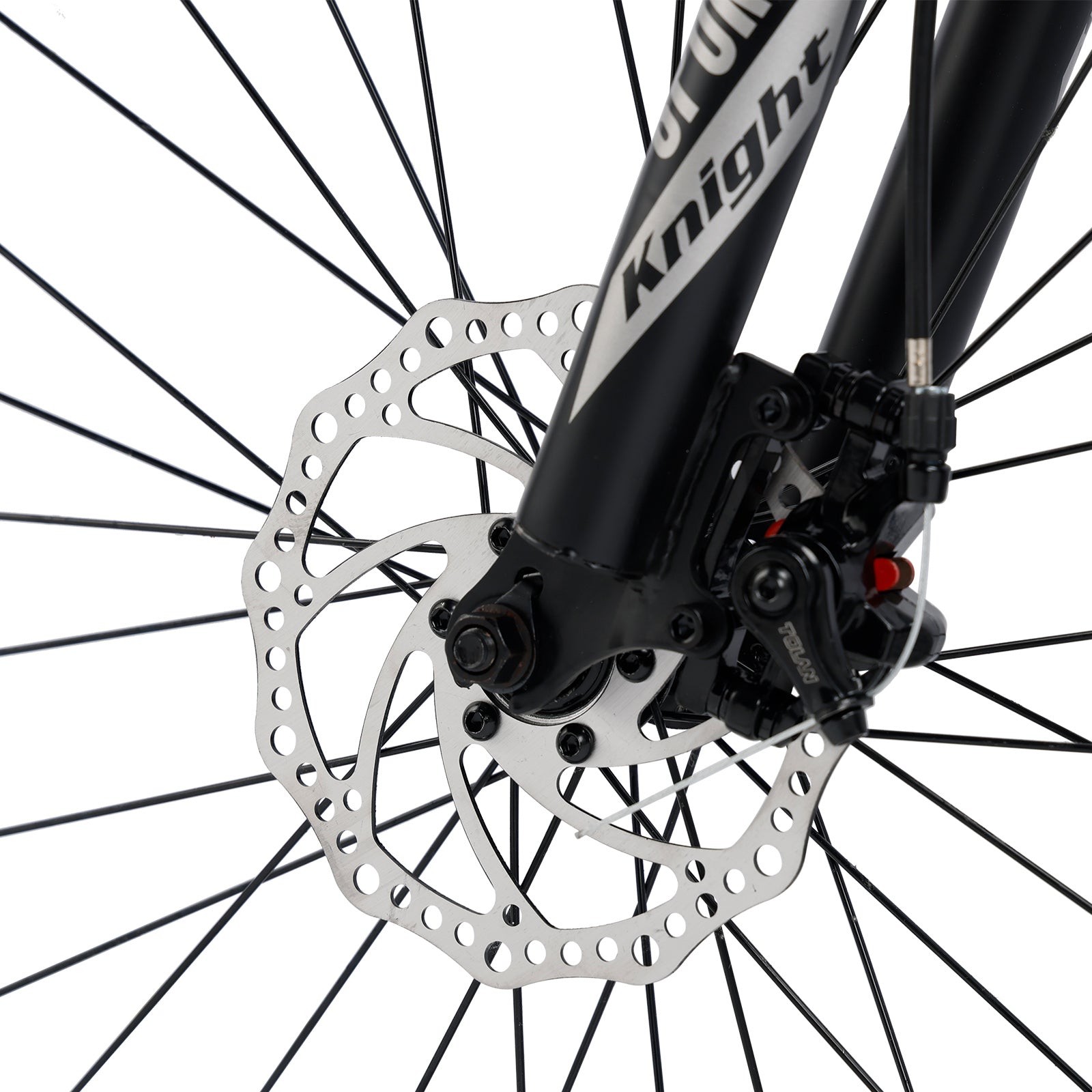Equipped with a 24-speed system, including a one-piece thumbshift and an 8-tower flywheel, this bike offers seamless gear transitions for conquering steep climbs or cruising downhill. Pre-adjusted dual disc brakes provide reliable stopping power, with adjustable brake cable tension for personalized precision. The disc brake hub enhances braking efficiency for confident control.