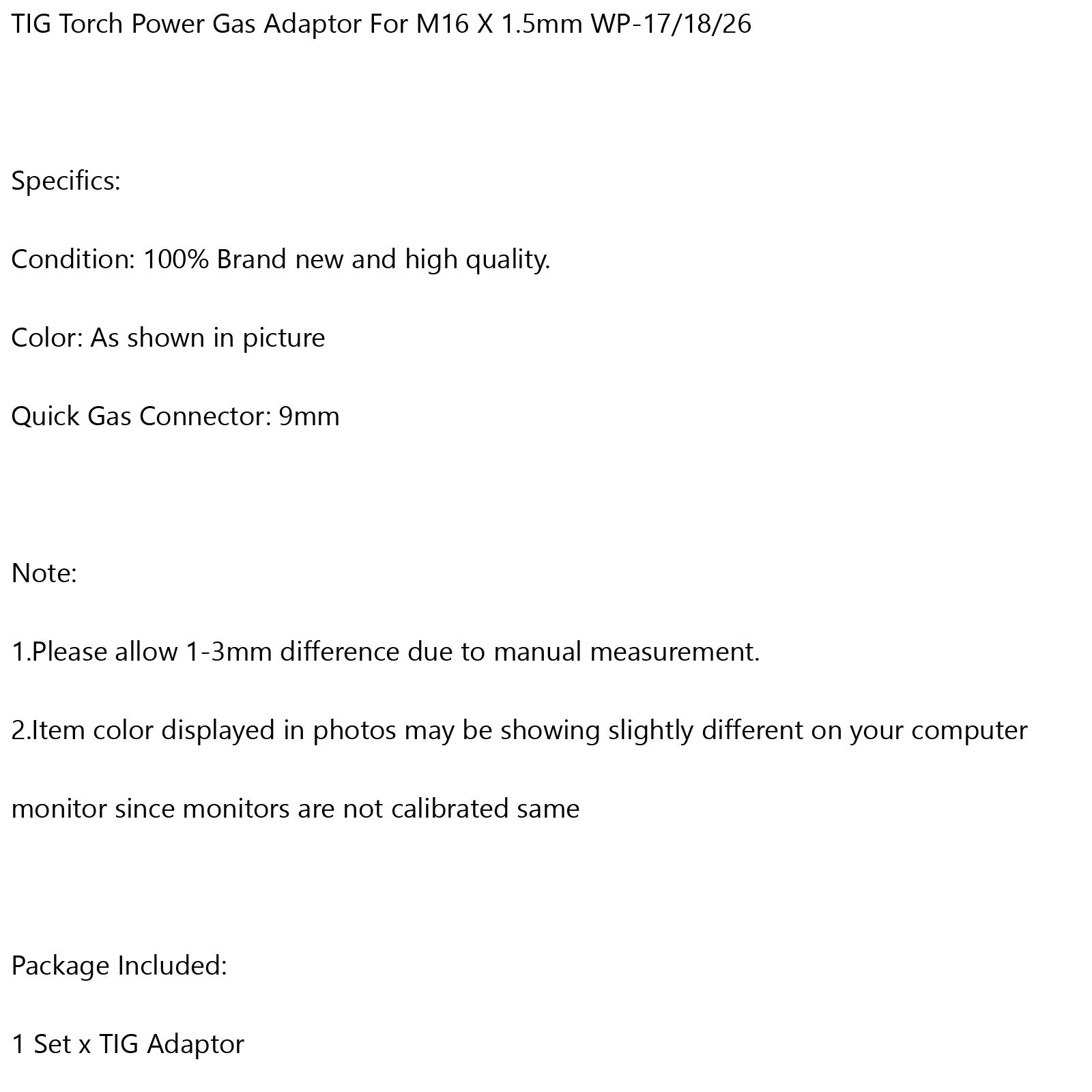 TIG Torch Power Gas Adaptor For M16 X 1.5mm WP-17/18/26
