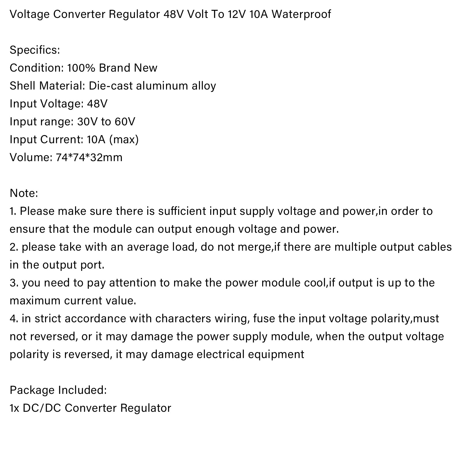 Voltage Converter Regulator 48V Volt To 12V 10A Waterproof
