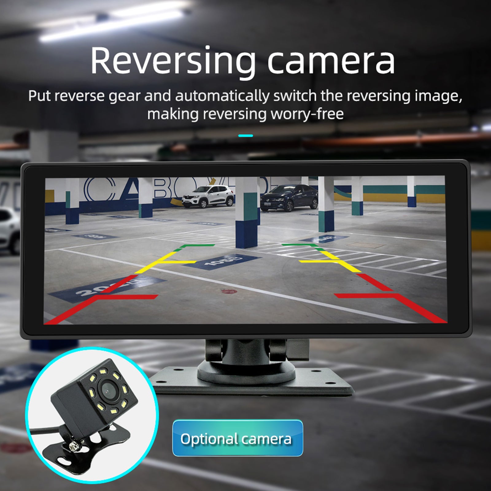 10.26" Portable Bluetooth Car MP5 Player HD Large Screen Wireless Carplay Car Radio AHD With Recorder Camera + 4 LED Camera