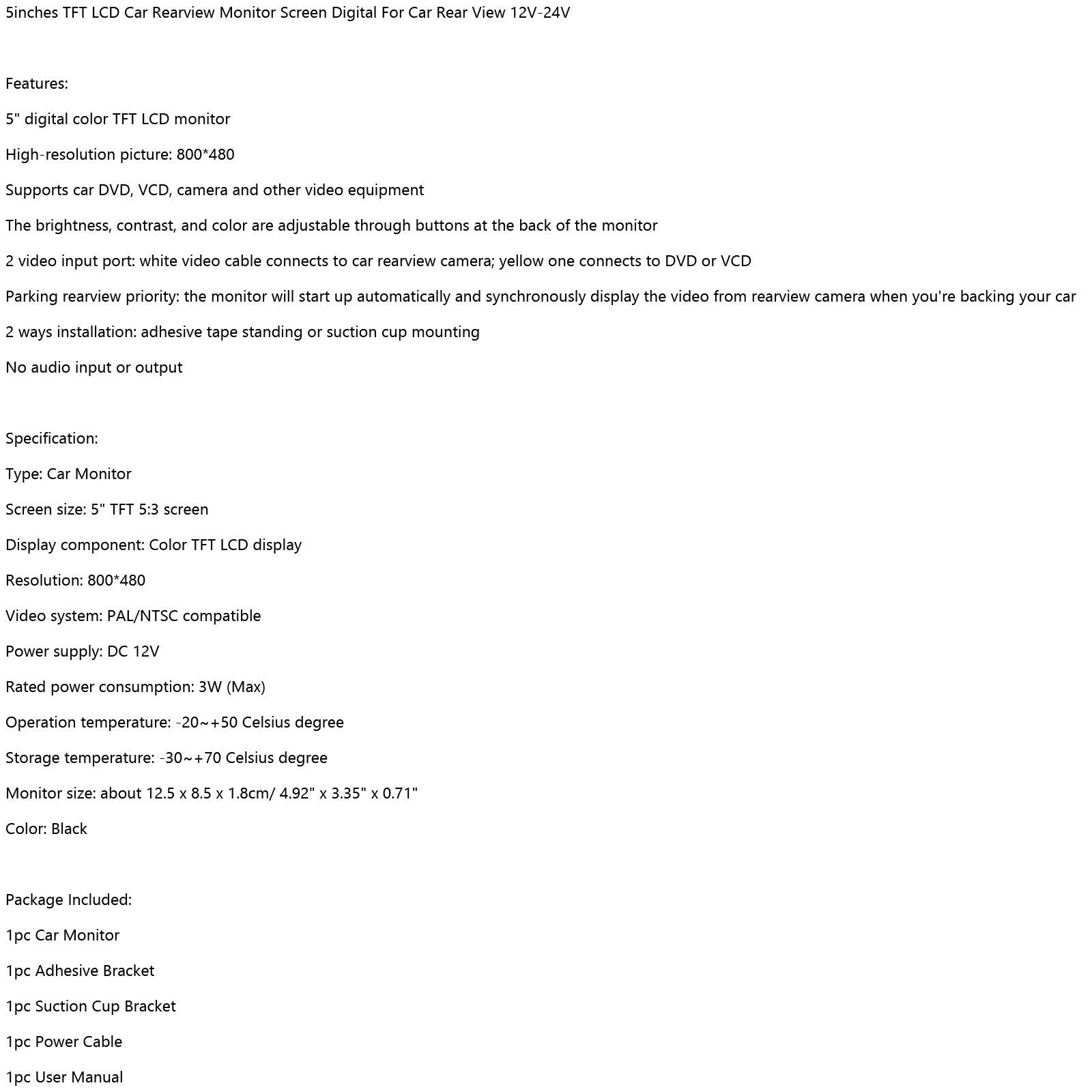 5inches TFT LCD Car Rearview Monitor Screen Digital For Car Rear View 12V-24V