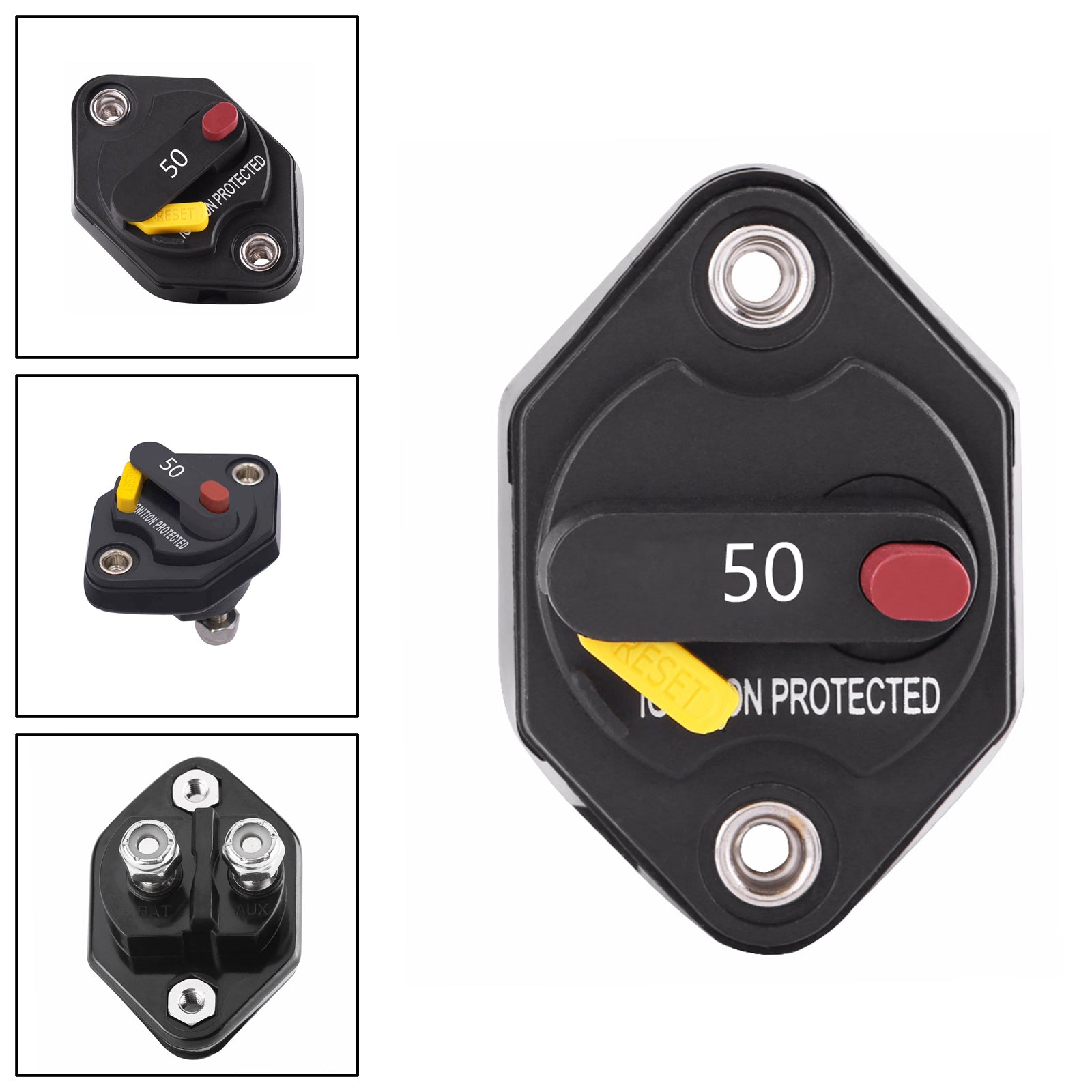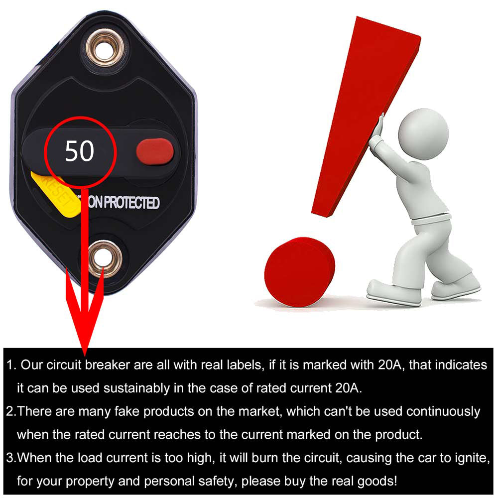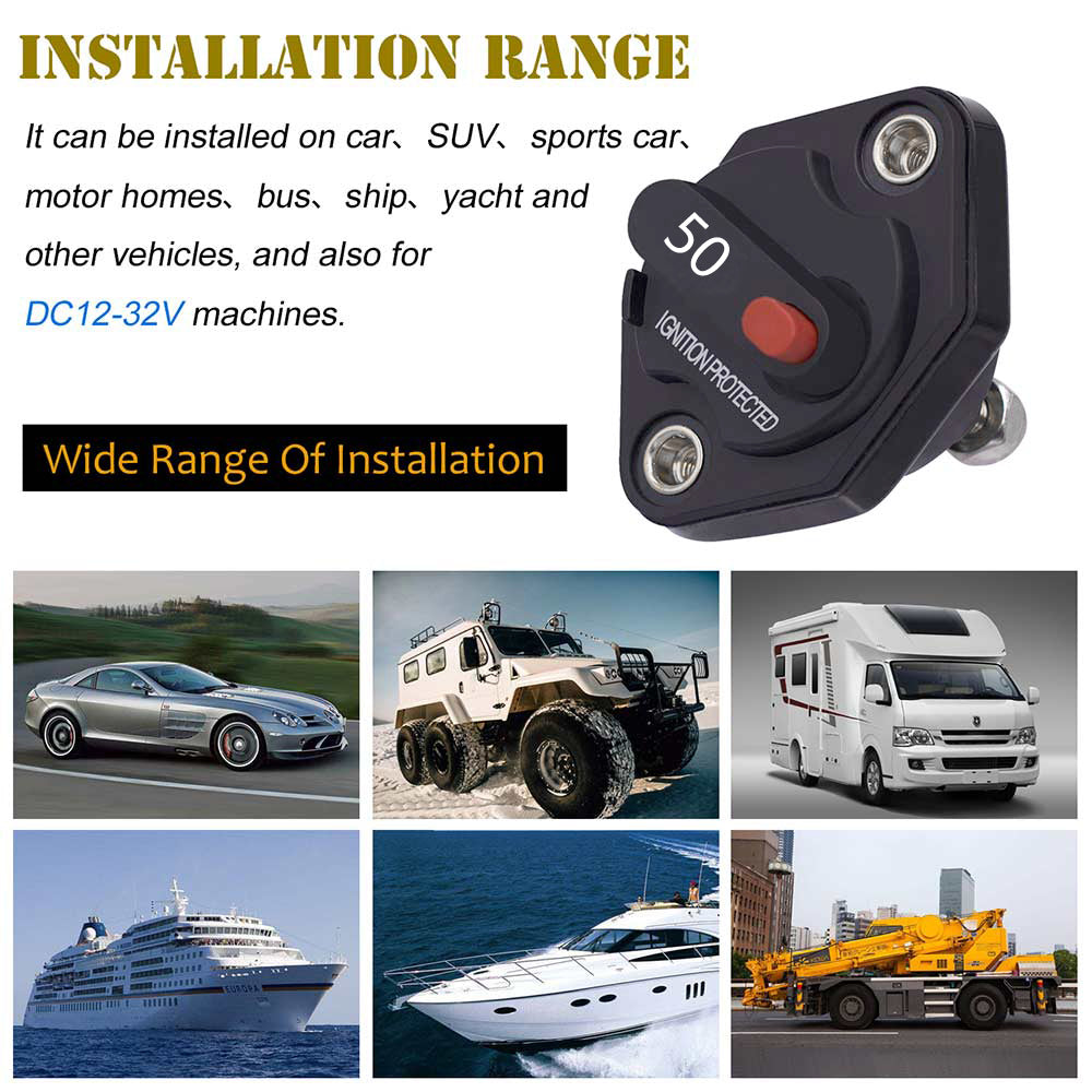 This Circuit Breaker offers critical protection to your system. When the system is over power or short circuit, the breaker will cut and save your equipment. No need to replace the fuses, the system can be reset by a simple switch which also offers safe and instant system shut down.This unit is external ignition protected and weatherproof. It is typically used in DC power systems in marine applications (as a main or branch circuit breaker), truck, bus, and RV system, add-on protection for accessories, etc.