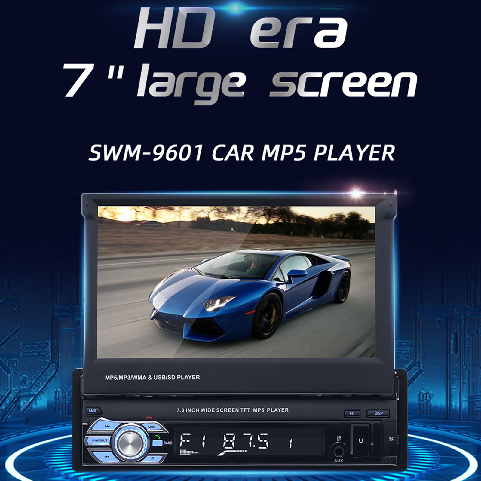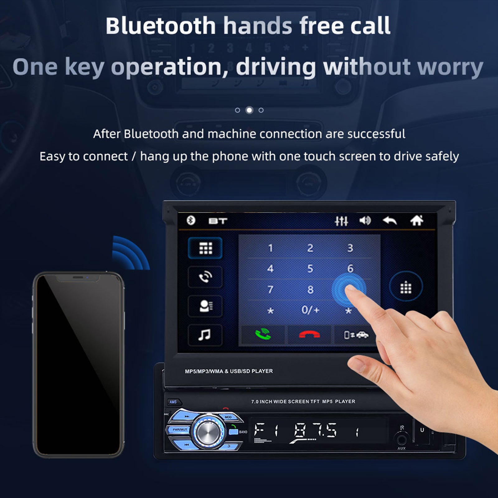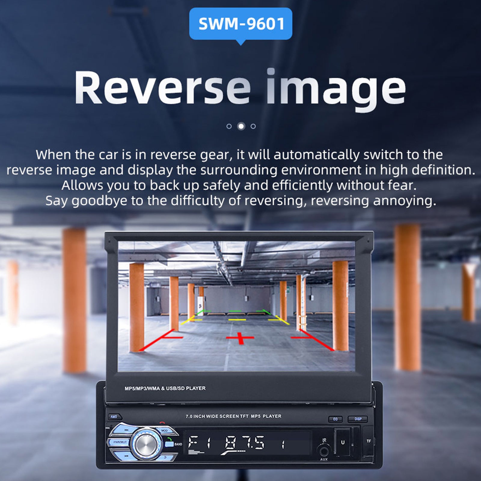7" 1Din Telescopic Touch Screen Car Radio Audio Stereo MP5 Player FM/USB/AUX/SD + 4 LED Camera