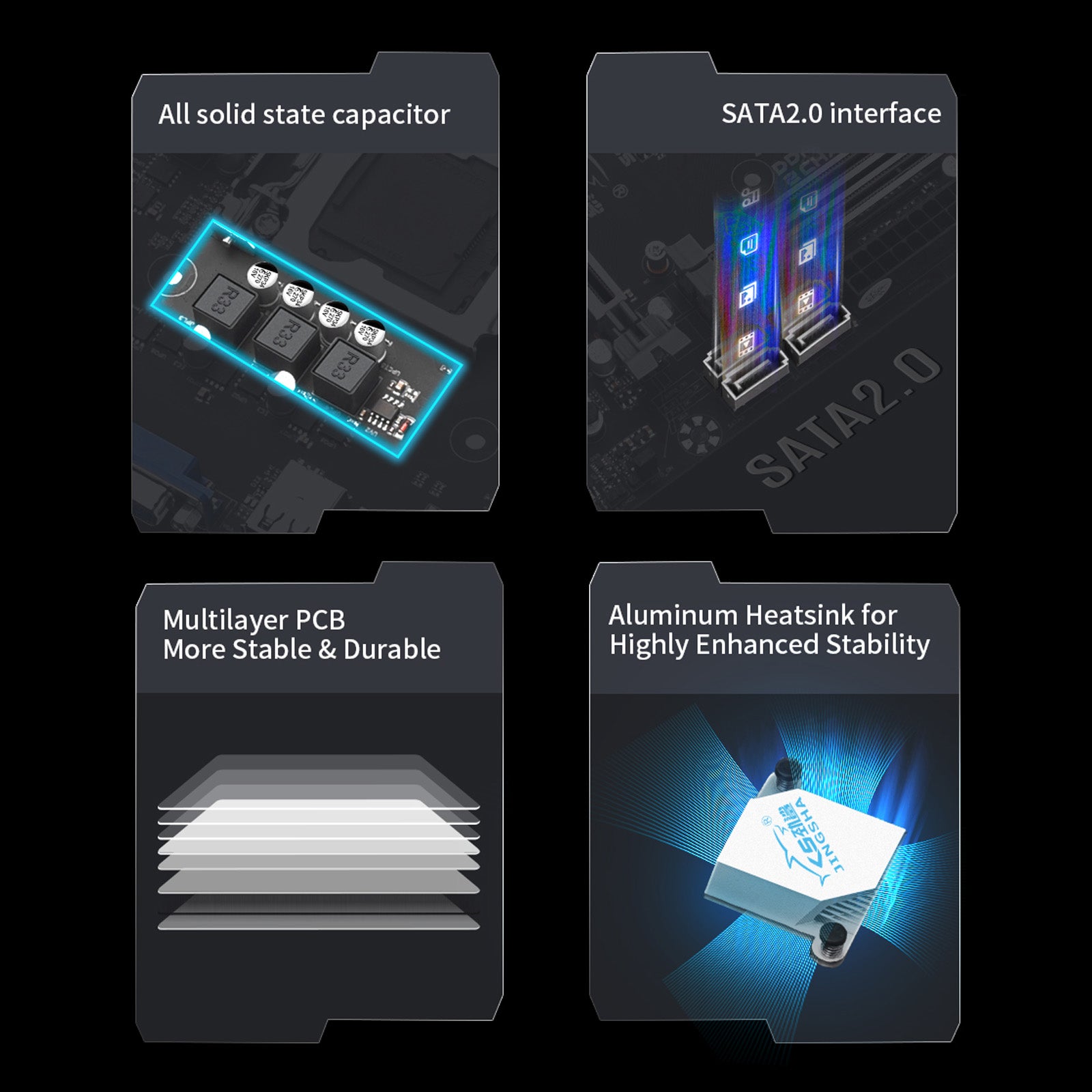 Storage: 4*SATA2.0 Port, 1*M.2 2280 NVMex4 2.0 Port, 1*M.2 2280 NGFF SATA3.0 Protocol SSD Port