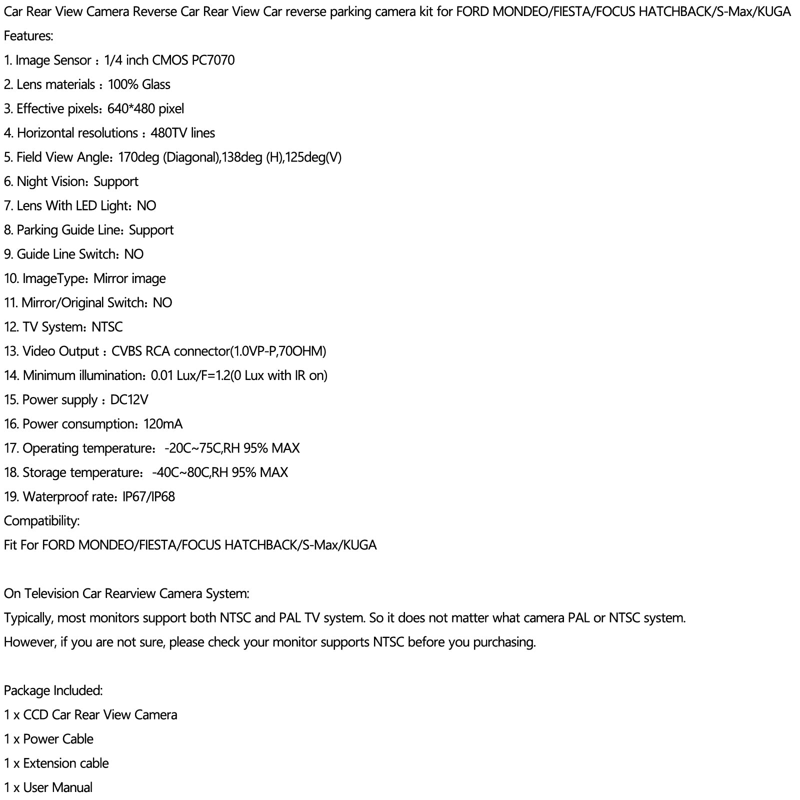 Car Reverse Backup Camera Fit for FORD MONDEO/FIESTA/FOCUS HATCHBACK/S-Max/KUGA
