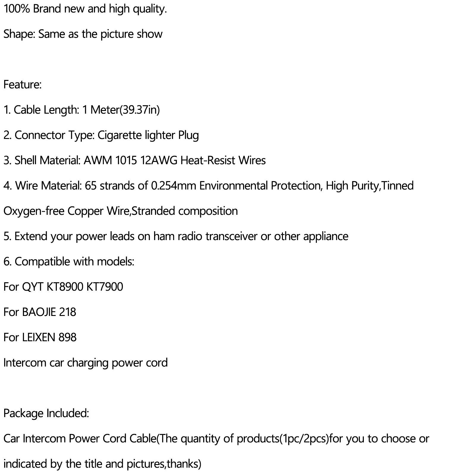 Car Intercom Power Cord Cable(The quantity of products(1pc/2pcs)for you to choose or indicated by the title and pictures,thanks)