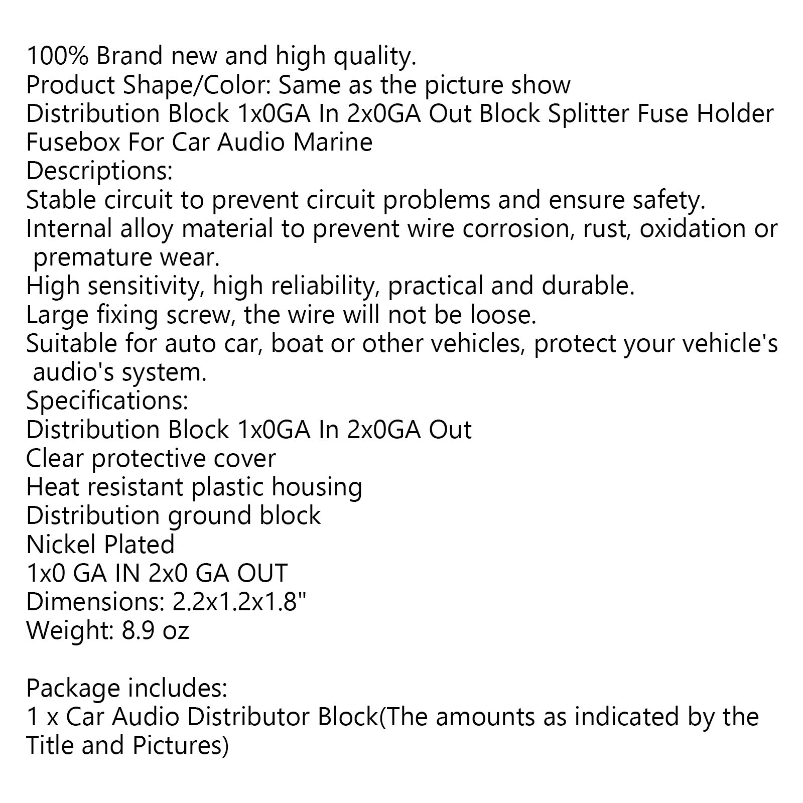 Plastic housing Nickel Plated Heat resistant Splitter Distribution Block 1x0 In 2x0 GA Out Block Splitter Fusebox Clear Cover for Car Audio Marine