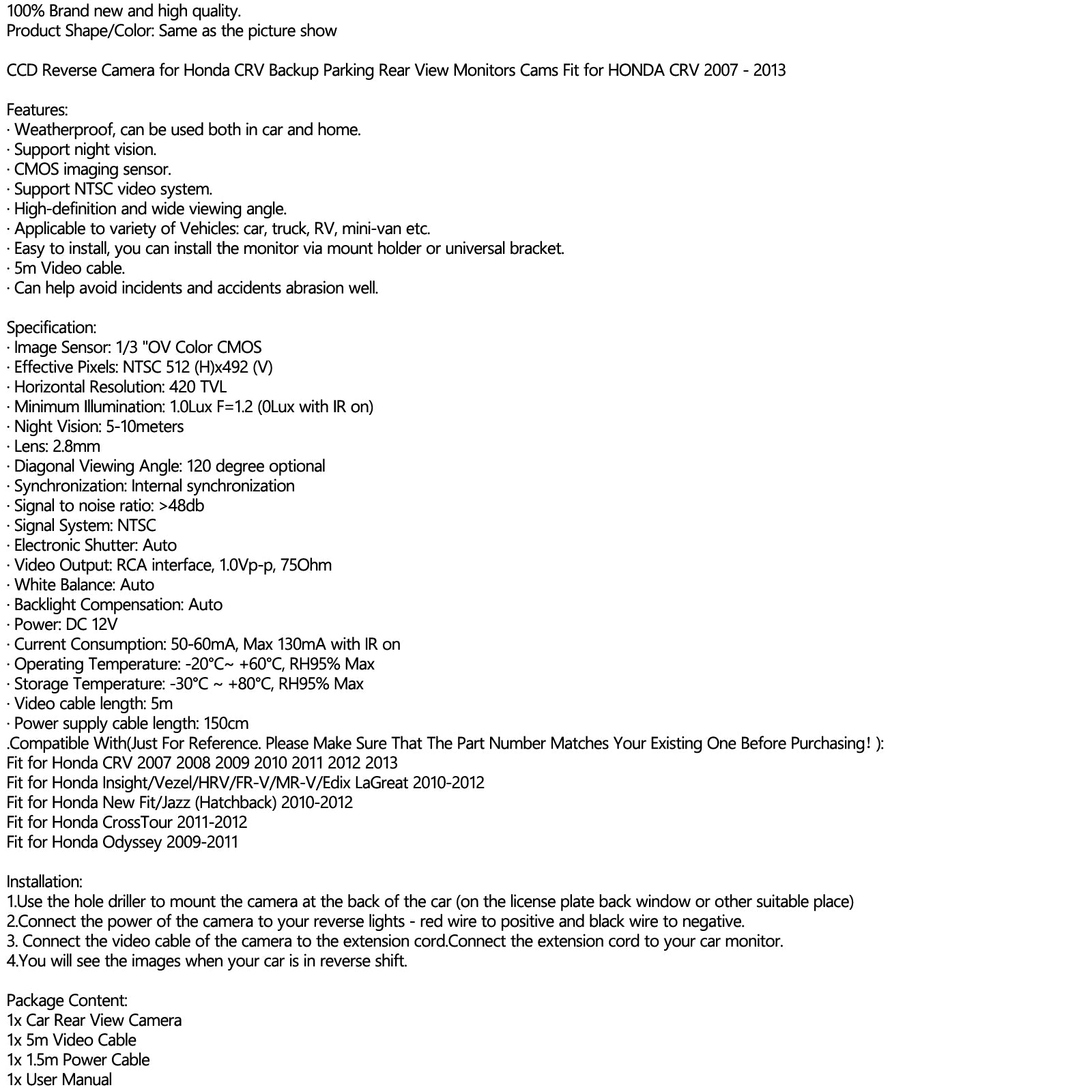CCD Reverse Camera for Honda CRV Backup Parking Rear View Monitors Cams Fit for HONDA CRV 2007 - 2013