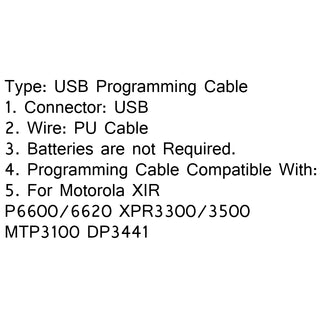 1x USB Programming Cable For XIR P6600/6620 XPR3300/3500 MTP3100 DP3441