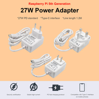 Raspberry Pi 5 Power Adapter USB-C Interface 27W Power 5V5A Full Current
