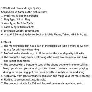 3.5mm Air Tube Headphone Anti-radiation Earphone Bodyguard Headset with Mic