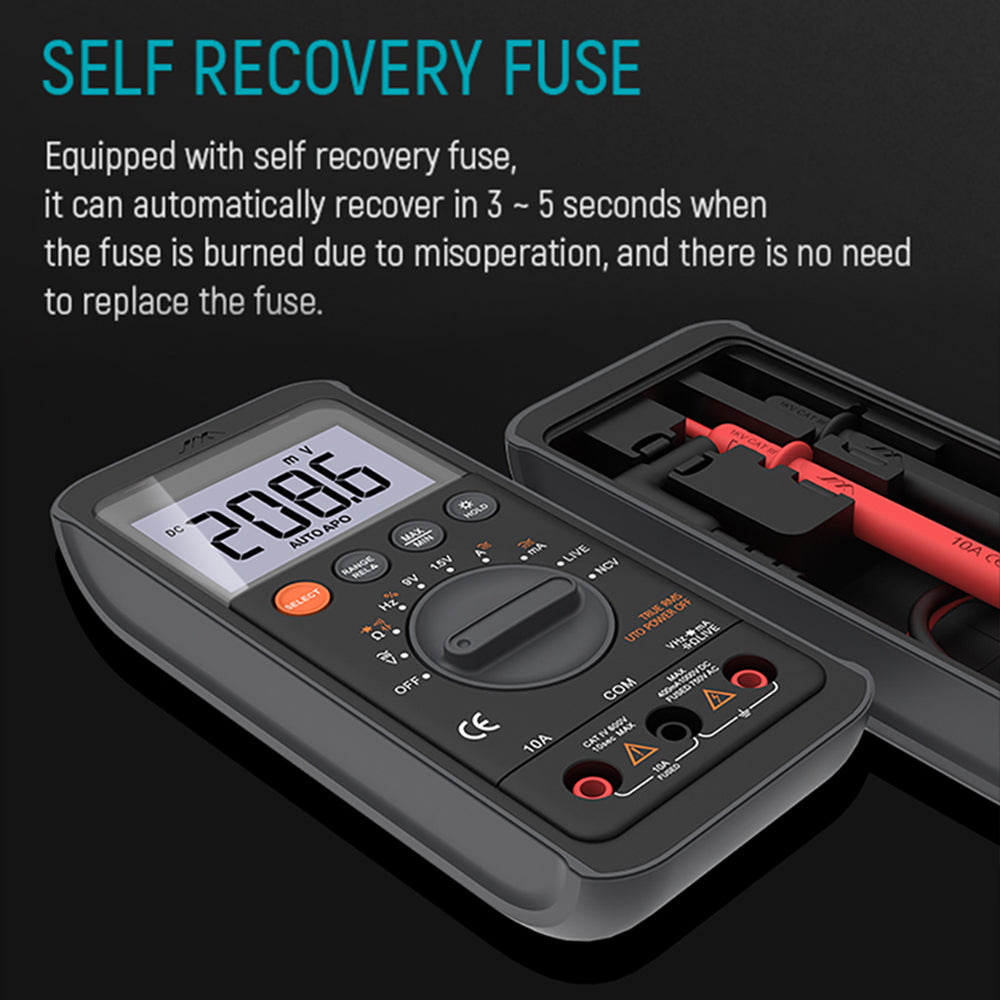 • 🔧 Multi-Function Mastery: Accurately measure AC/DC Voltage, Current, Resistance, Continuity, Diode test, and more. Includes high-quality, flexible 10A test leads with anti-fold protection for long-term reliability.