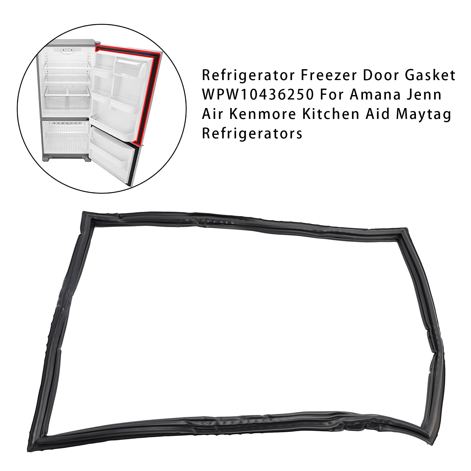 Refrigerator Freezer Door Gasket WPW10436250 For Amana Jenn Air Kenmore Kitchen Aid Maytag Refrigerators