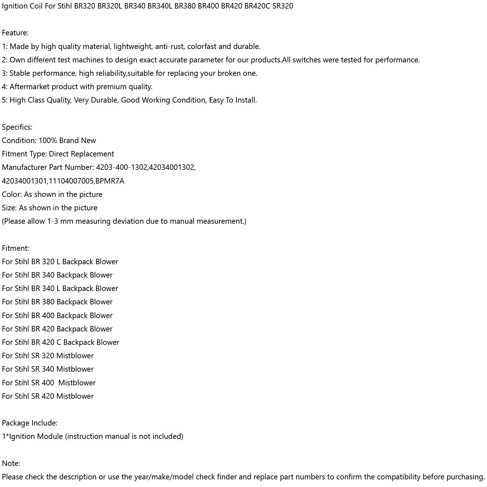 Ignition Coil For Stihl BR320 BR320L BR340 BR340L BR380 BR400 BR420 BR420C SR320