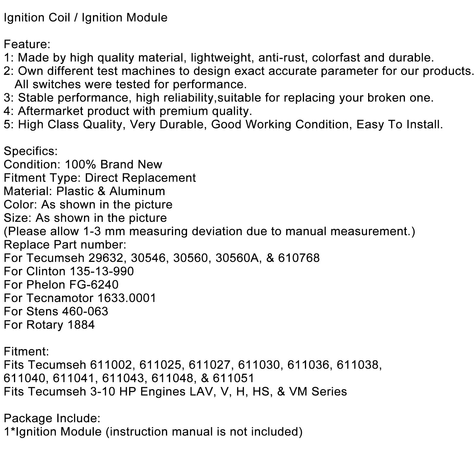 1*Ignition Module (instruction manual is not included)