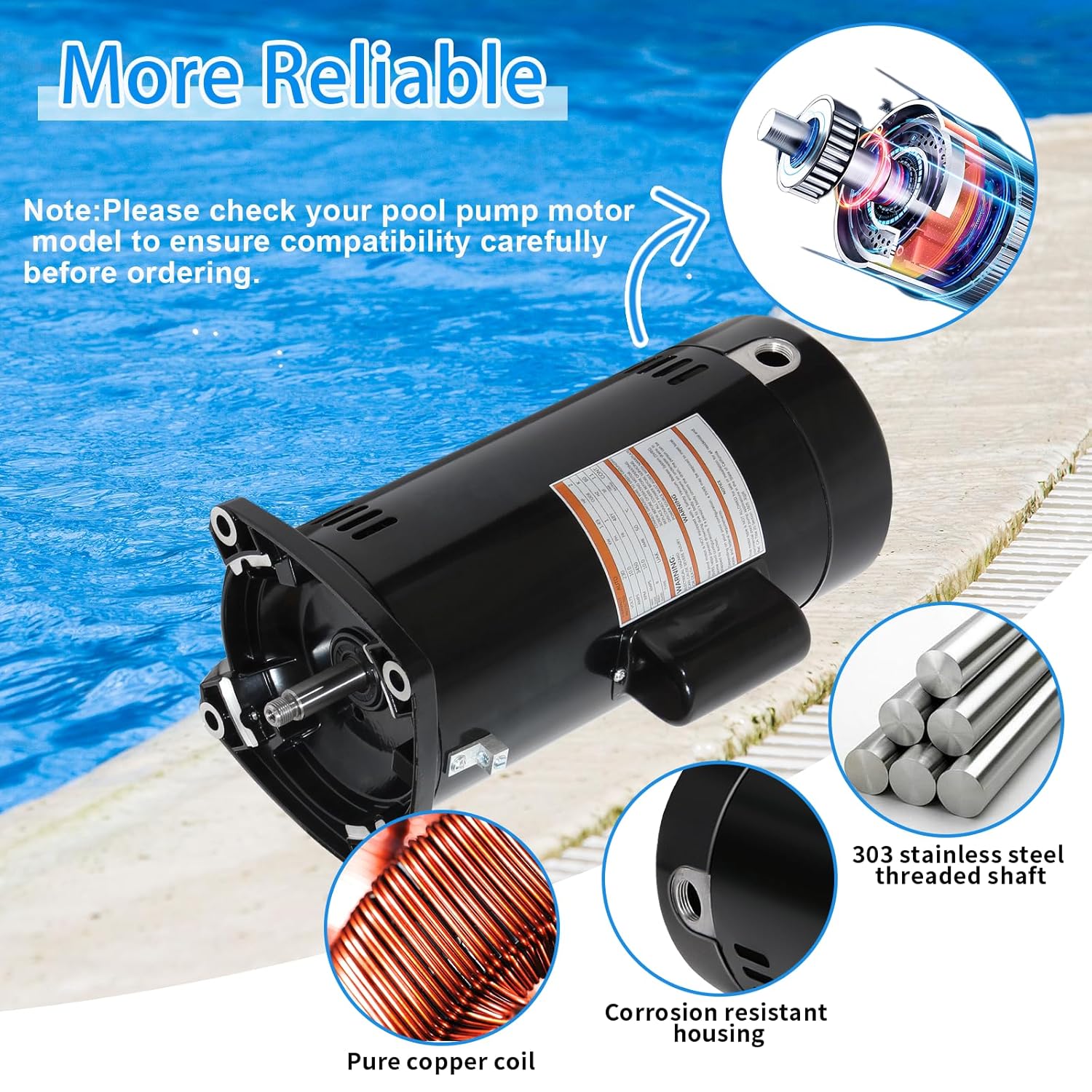 I did research on pool pumps after my rebuilt pool pump had a bearing start to go bad. This pump is listed with a rating of 5.0 . It was still cheaper than rebuilding my existing pump so i figured I’d try it. 1 week in and no issues and much quieter than my old pump.