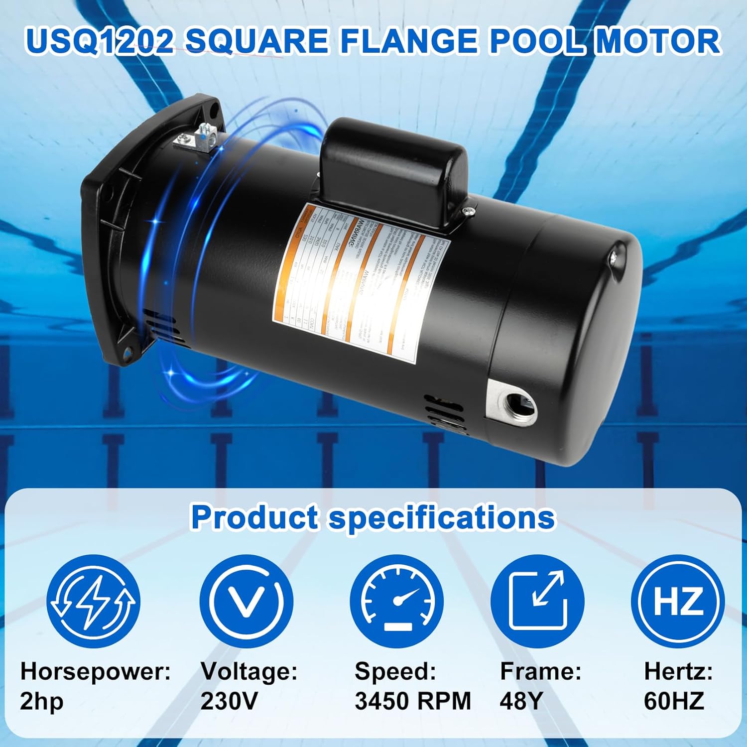 USQ1202 Pool Pump Motor Single Speed Pool Motor 2 HP High Efficiency