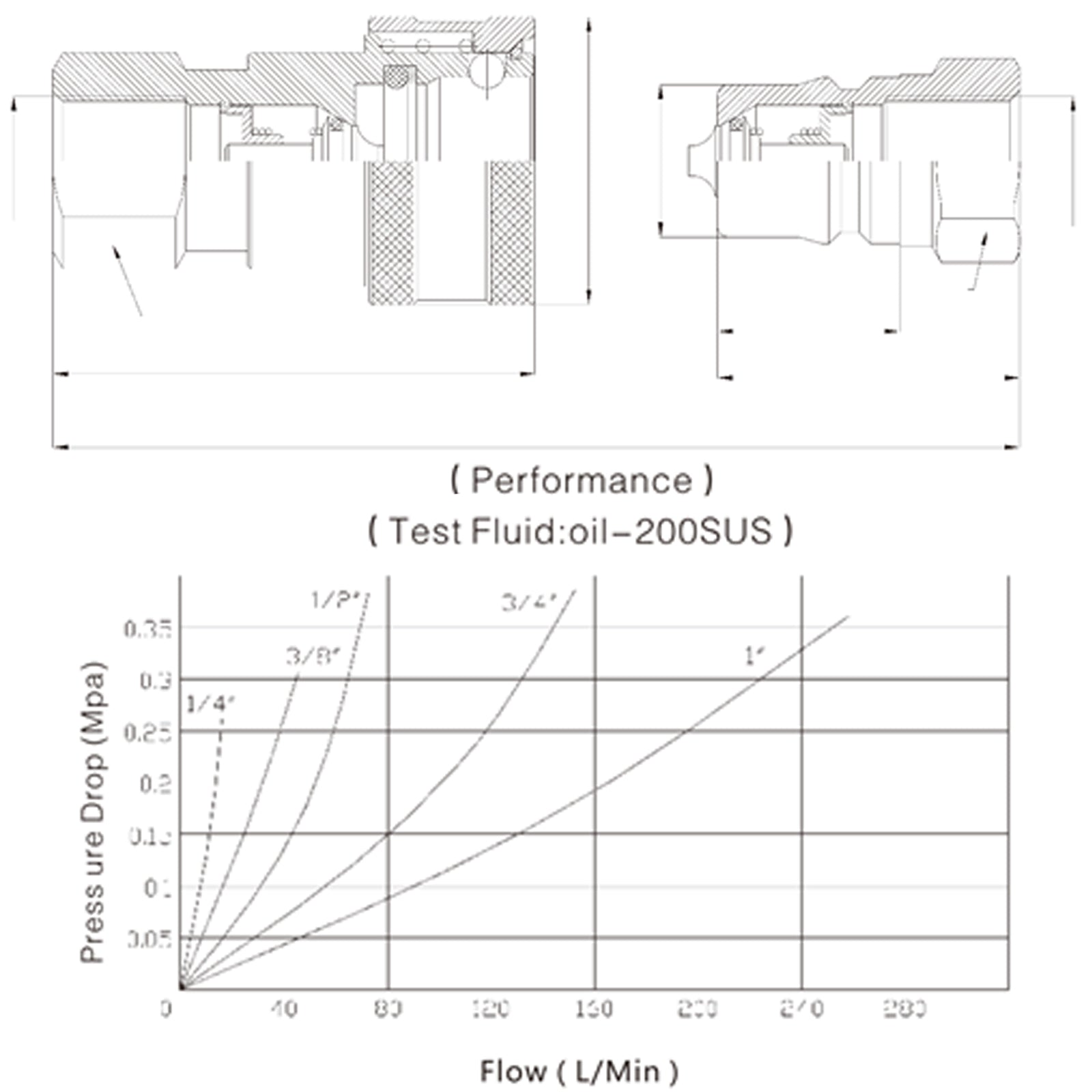 1/4" NPT ISO 7241-B Quick Disconnect Hydraulic Couplings / Couplers ISO Standard: ISO 7241-B Thread: Male 1/4" NPT + Female 1/4" NPT