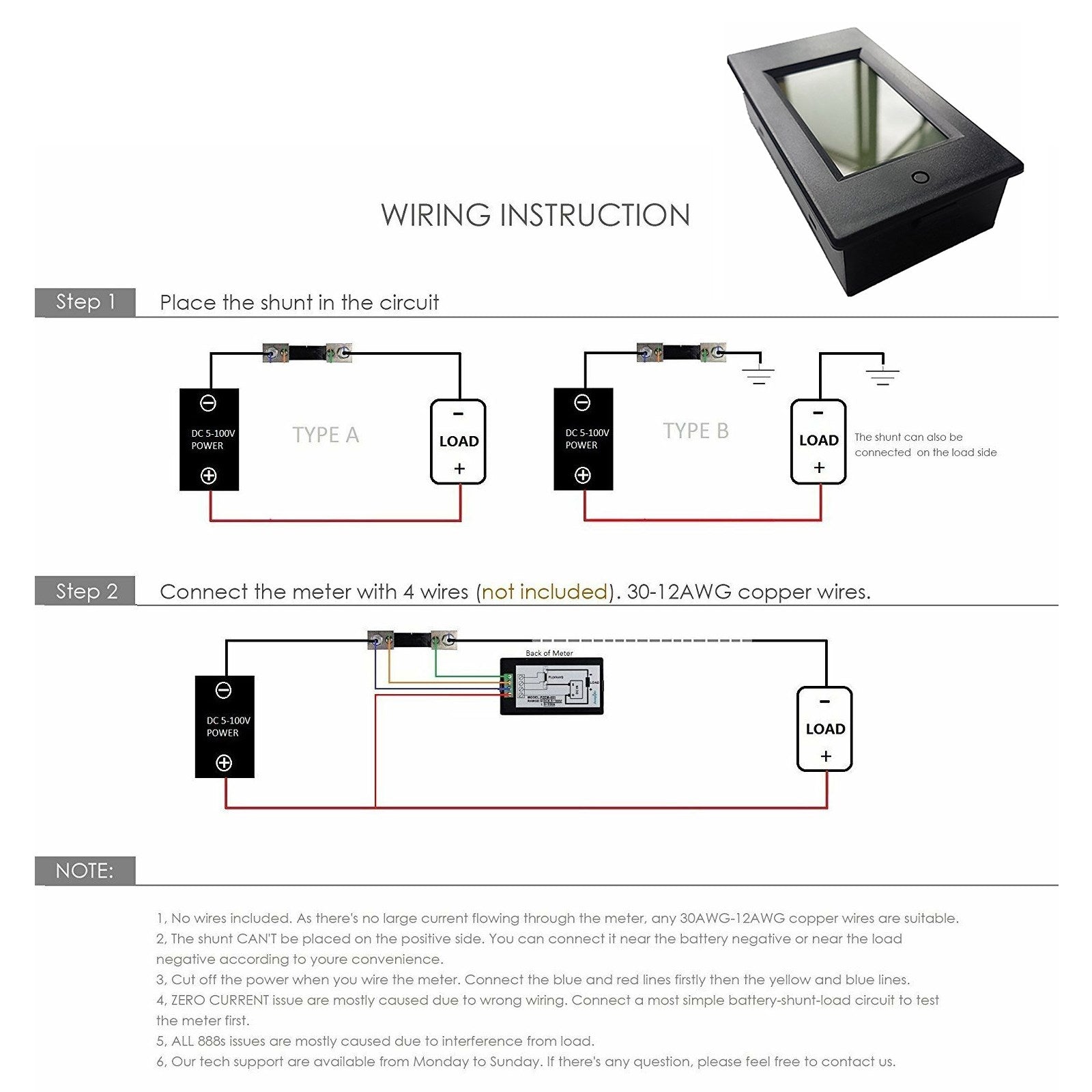 1x 100A LCD Panel DC Power Meter (including the shunt)