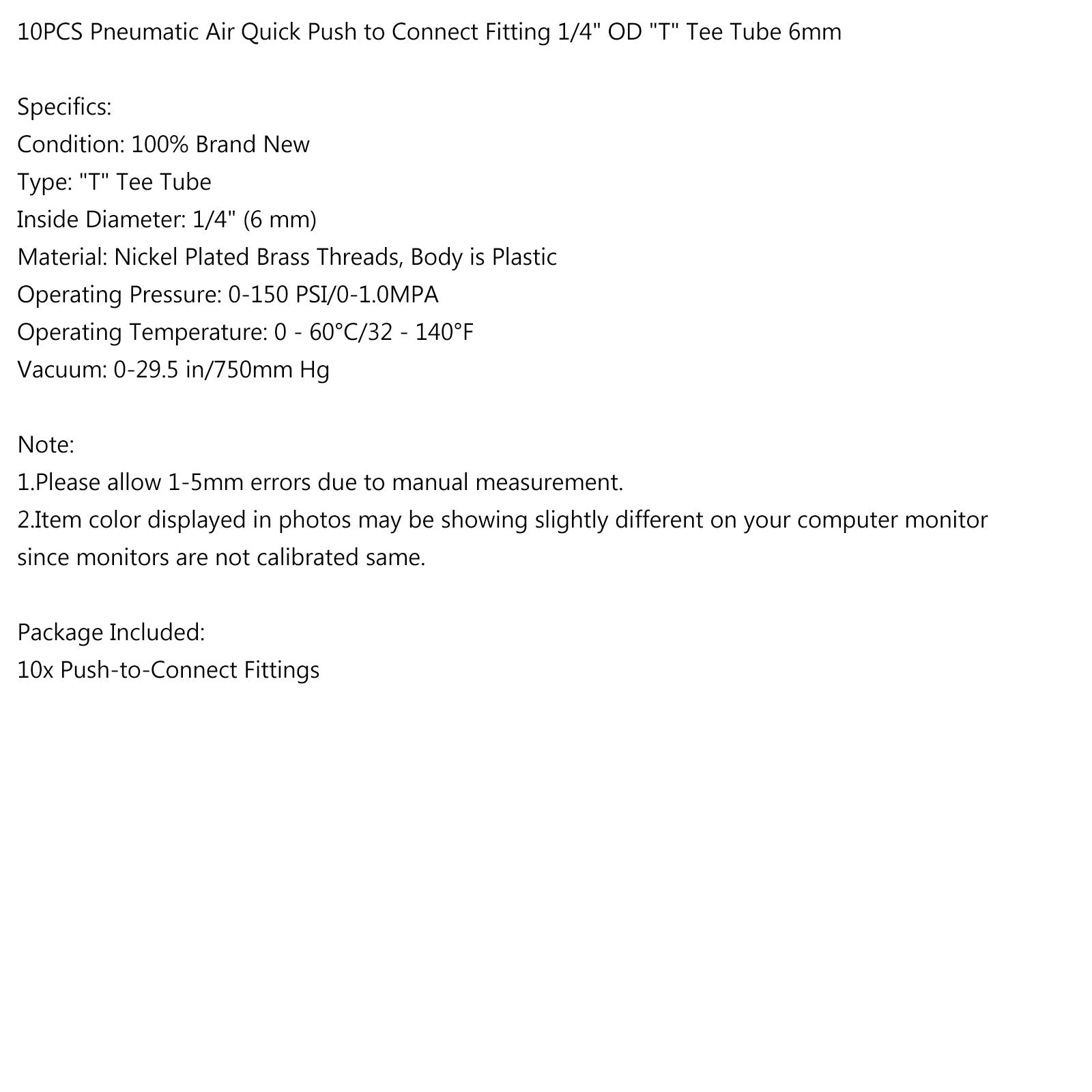 10PCS Pneumatic Air Quick Push to Connect Fitting 6 mm OD "T" Tee Tube 6mm