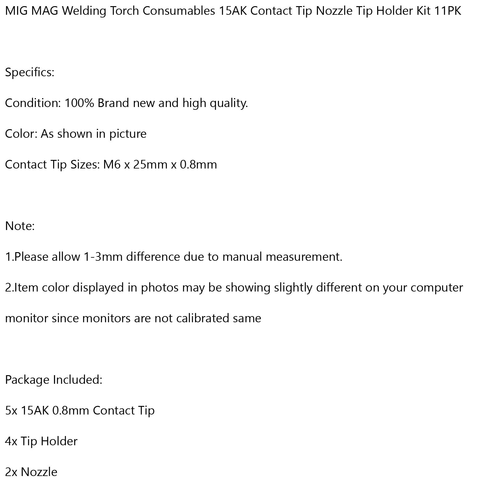 MIG MAG Welding Torch Consumables 15AK Contact Tip Nozzle Tip Holder Kit 11PK