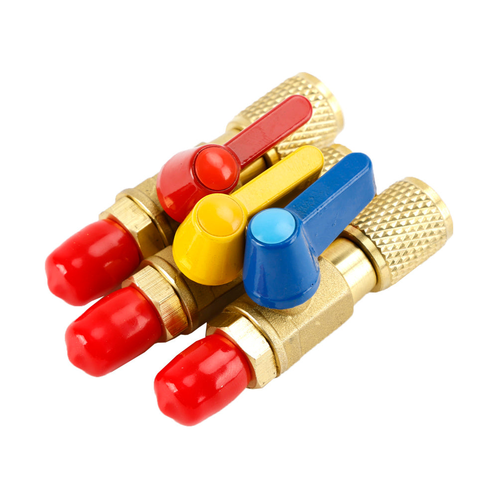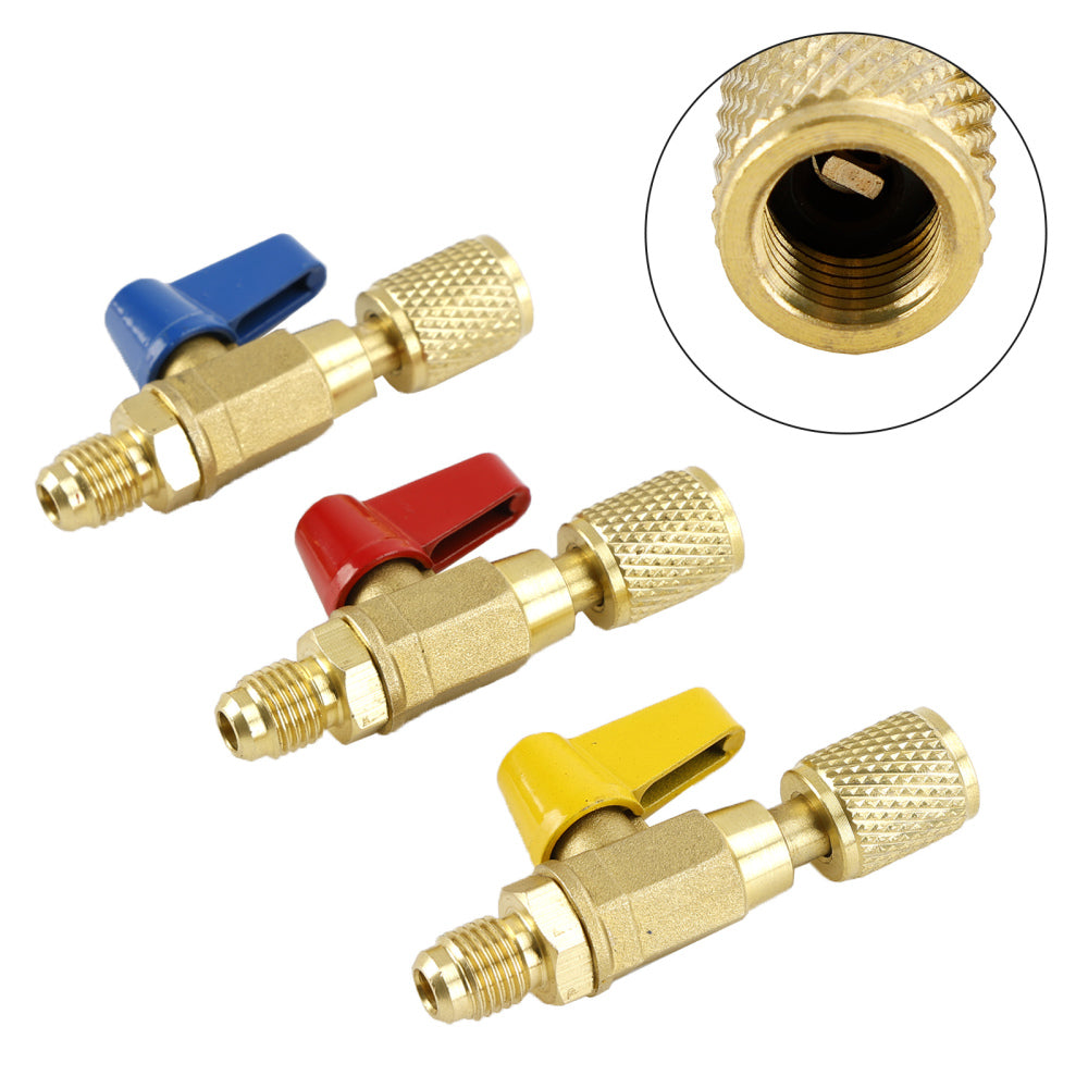 3Pcs HVAC A/C Straight Shut-Off Ball Valve Adapter For Air Conditioner 1/4"