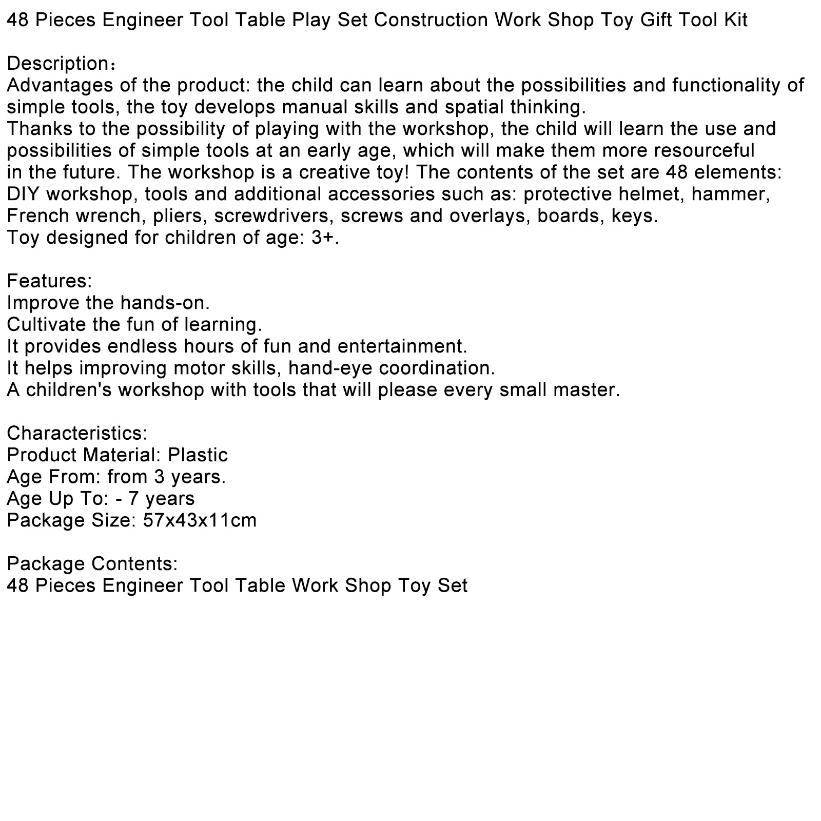 48 Pieces Engineer Tool Table Play Set Construction Work Shop Toy Gift Tool Kit