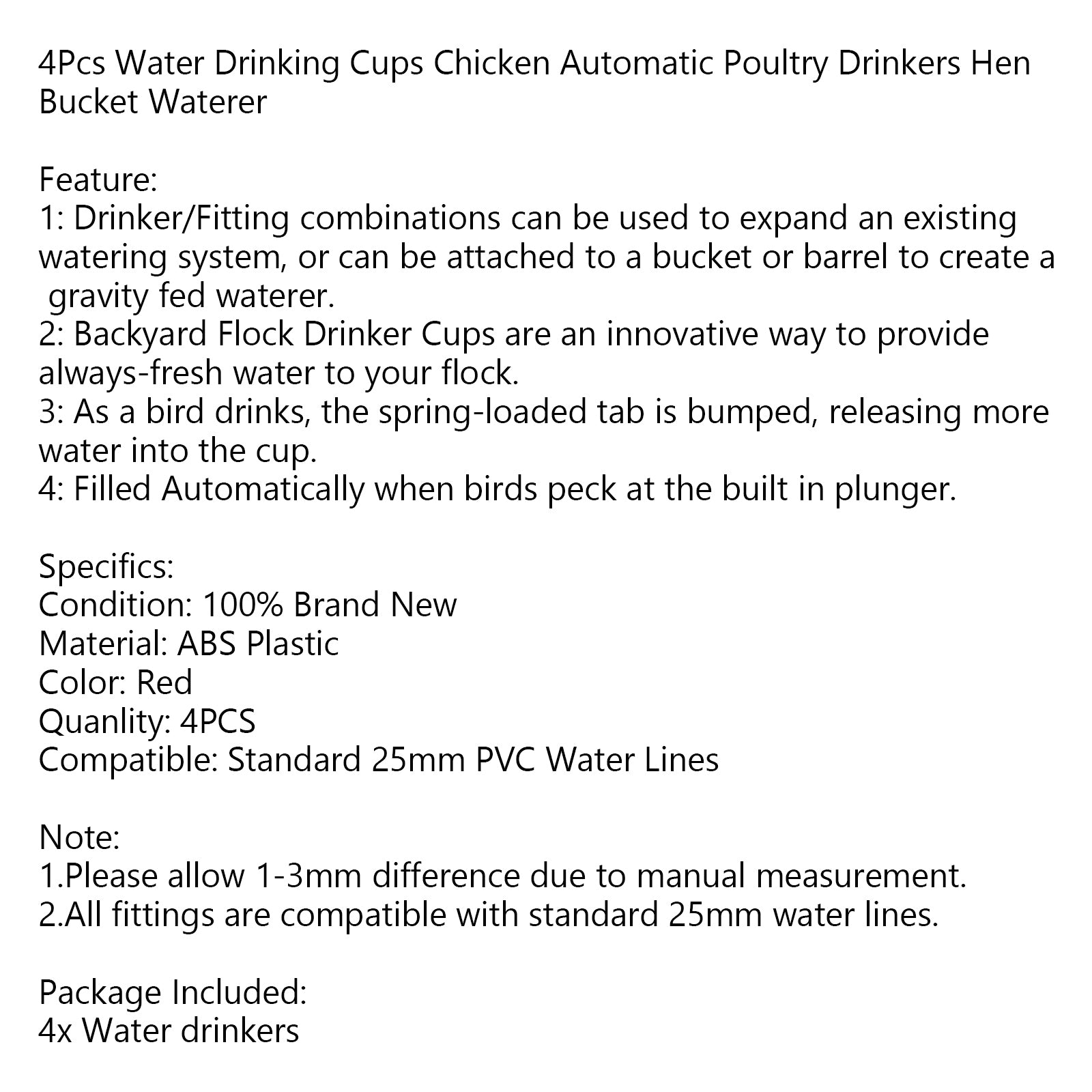 4Pcs Water Drinking Cups Chicken Automatic Poultry Drinkers Hen Bucket Waterer