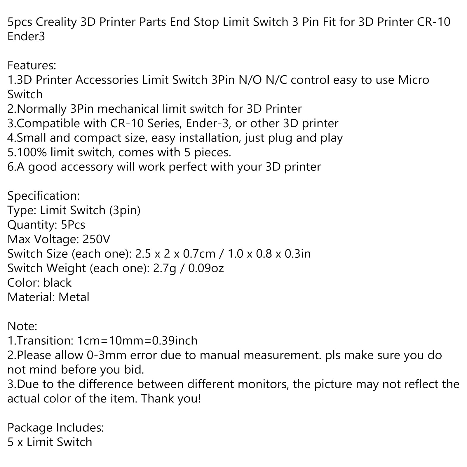 5pcs Creality 3D Printer Parts End Stop Limit Switch 3 Pin Fit for 3D Printer CR-10 Ender3