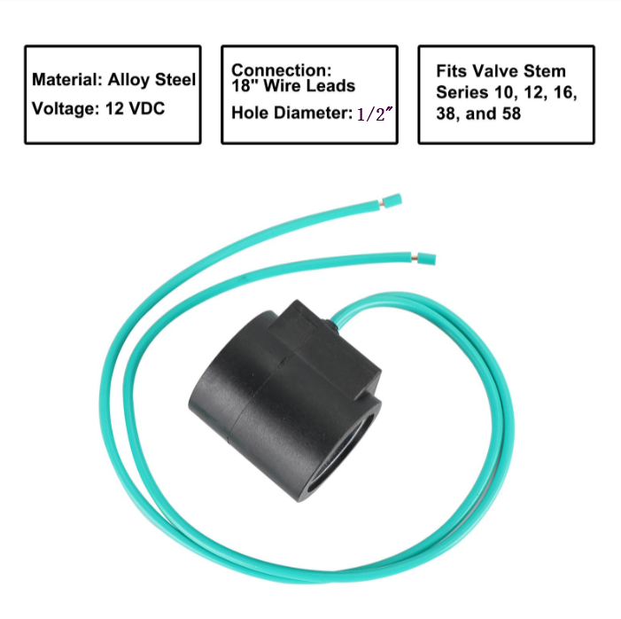 6352012 Solenoid Valve Coil 18" Wire Leads 12V Dc Size 10 Hole Diameter: 13mm/0.51inches Fits Valve Stem Series 10, 12, 16, 38, and 58