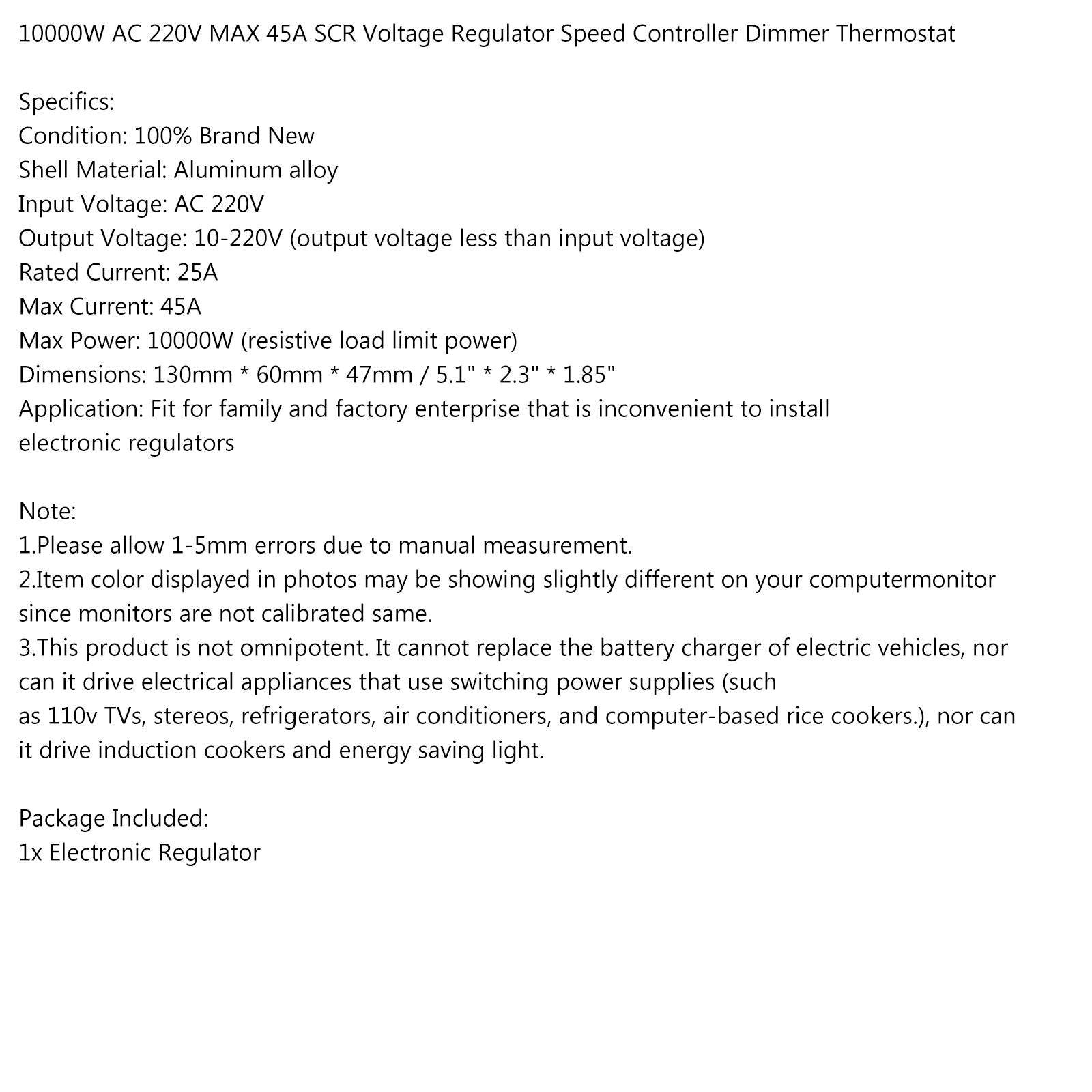 10000W AC 220V MAX 45A SCR Voltage Regulator Speed Controller Dimmer Thermostat