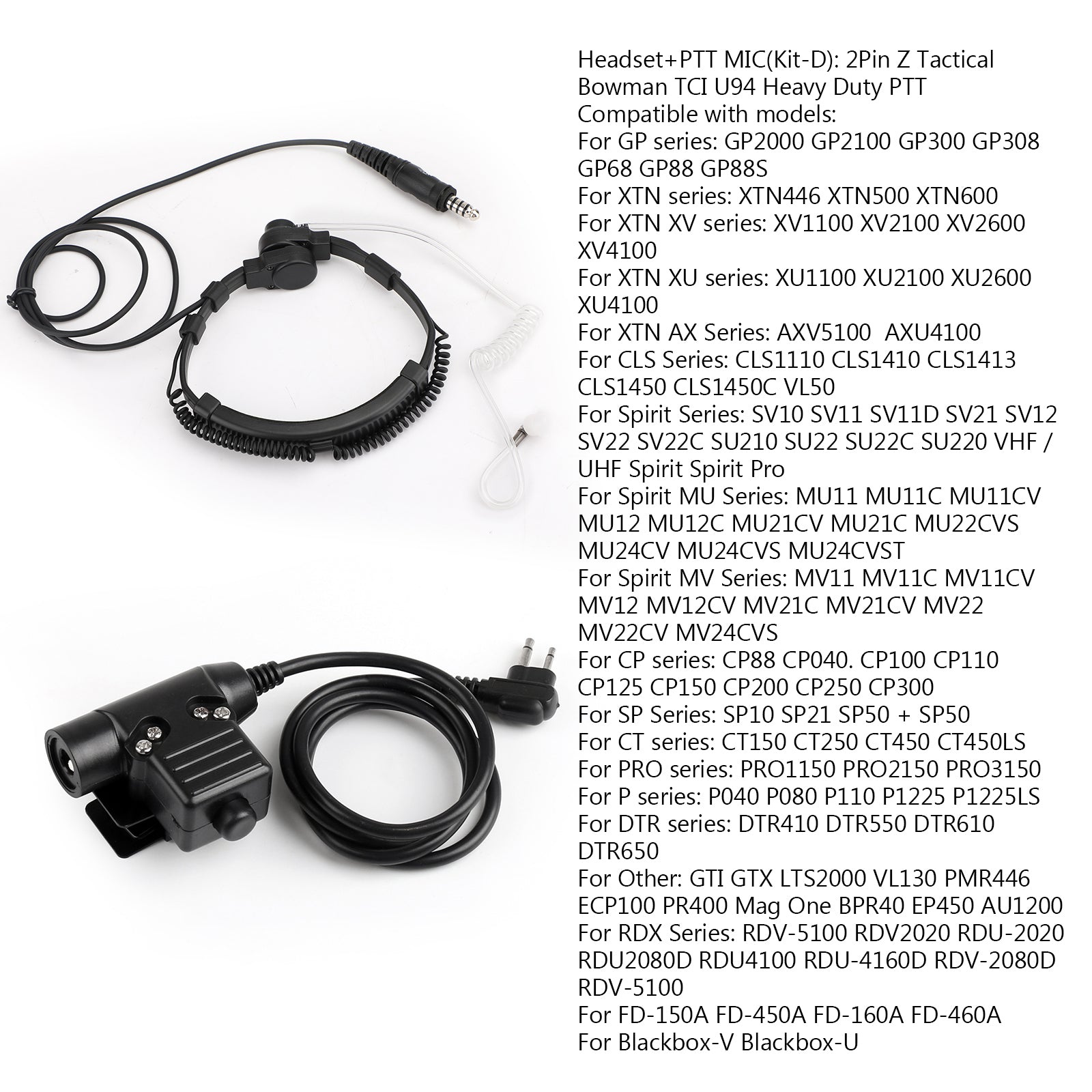 ## Headset+PTT MIC(Kit-D): 2Pin Z Tactical Bowman TCI U94 Heavy Duty PTT
