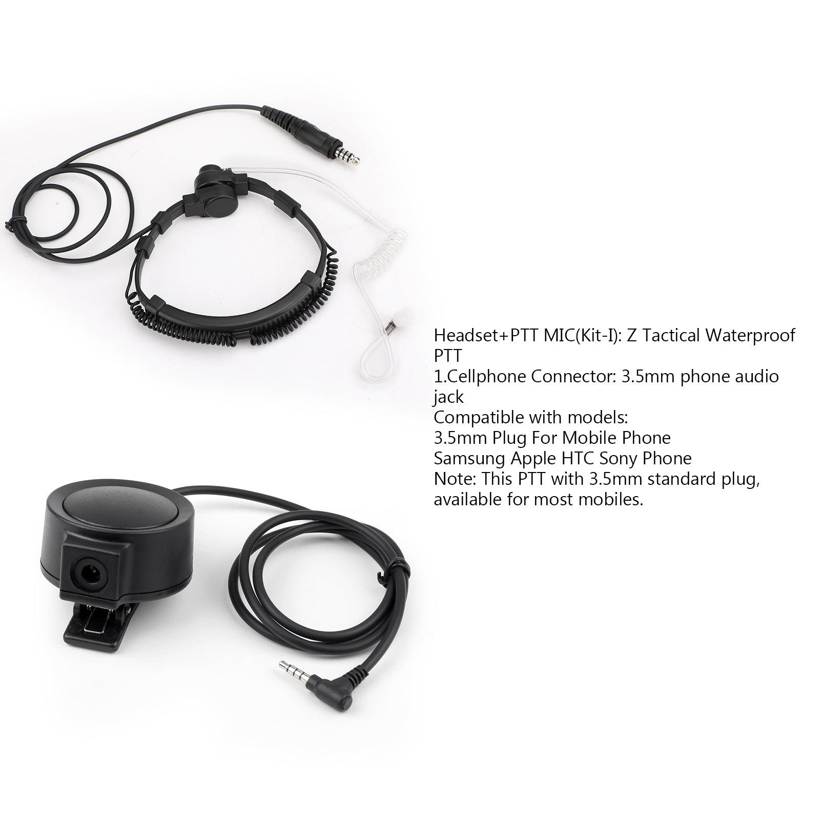 ##Headset+PTT MIC(Kit-I): Z Tactical Waterproof PTT
